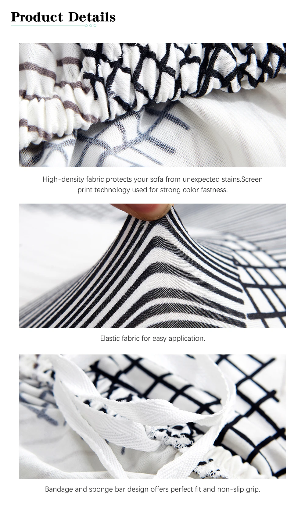 -Ткань высокой плотности защищает диван от неожиданных пятен. -Технология трафаретной печати используется для высокой цветостойкости. -Эластичная ткань для легкого нанесения. -Бандаж и губчатая планка обеспечивают идеальное прилегание и нескользящее сцепление. -Доступны в различных цветах и дизайне узоров, чтобы соответствовать любому интерьеру. -Можно использовать дома, в отеле или на специальных мероприятиях. -Поставляется в 4 размерах, подойдет для различных диванов и диванов. -Полностью машинная стирка.