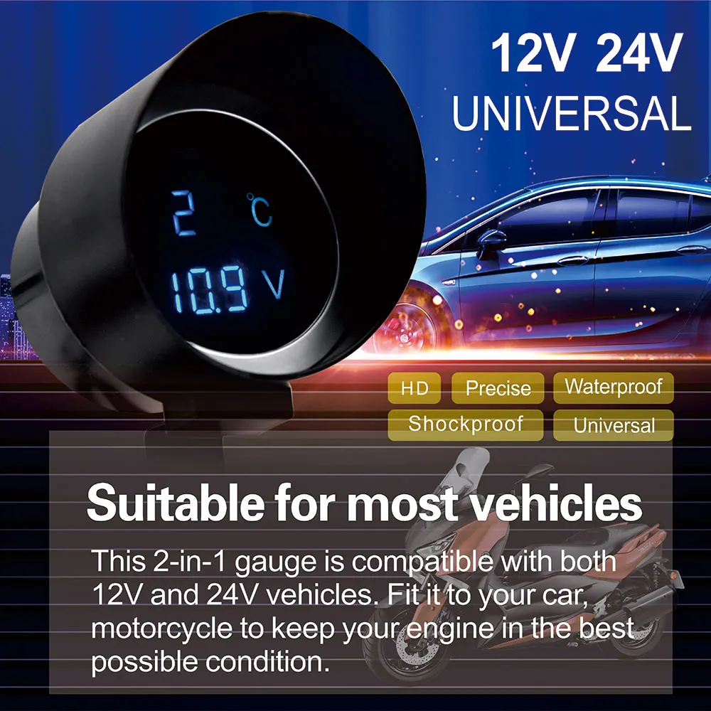 Круглый ЖК- цифровой датчик температуры воды для автомобиля грузовика Температурный датчик температуры мото + вольтметр напряжение 2 в 1 12 В 24 В датчик температуры
