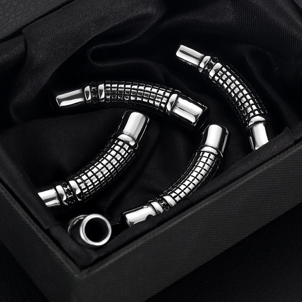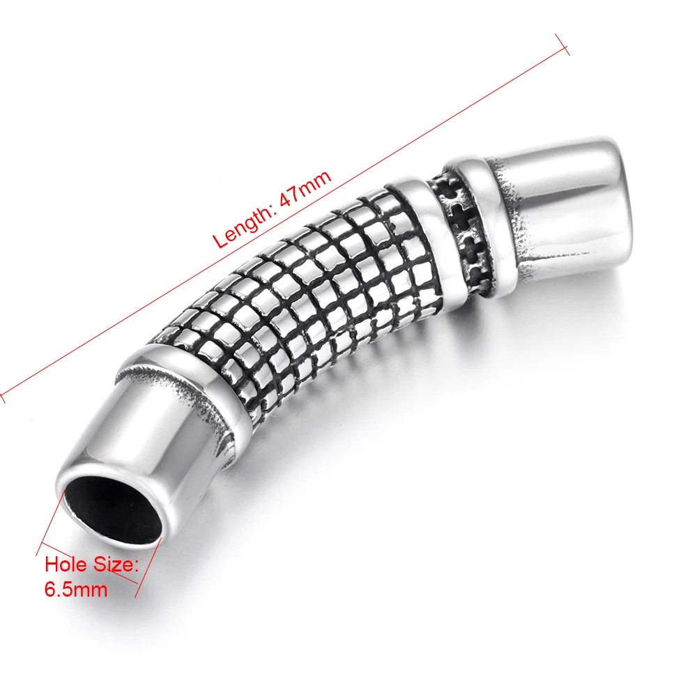 Изготовленный из нержавеющей стали 316L, Этот соединитель может быть использован для добавления длины в дизайне ювелирных изделий, создания нескольких нитей или может даже использоваться в качестве свисающих деталей. Они делают чудесные и инновационные акценты в ожерельях, браслетах. Есть стили для всех, от замысловатых и подробных фокусных элементов до простых частей, полных функциональности. Подходит для одной подставки из 6 мм круглой кожи. Безупречно изготовлено с зеркальной отделкой и затемнением. Это отличный вариант для мужских украшений.