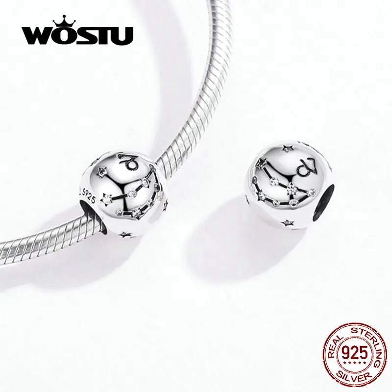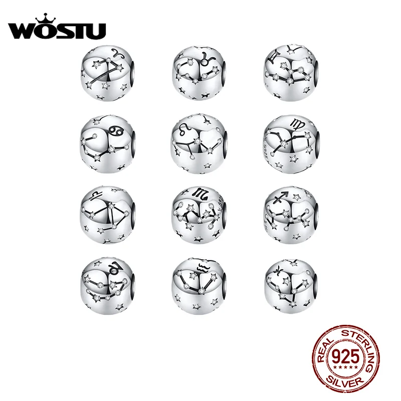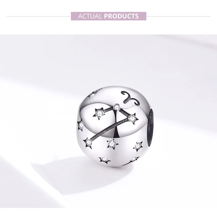12 Созвездие овна бусин из серебра 925 пробы с фианитами, оригинальные бусины для браслетов сделай сам для изготовления ювелирных изделий CQC1218