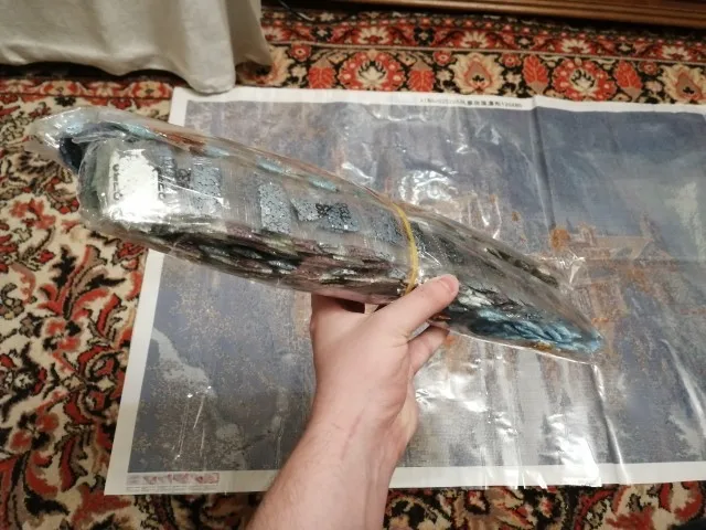 Посылка пришла довольно быстро, за пару недель. Но так как заказ был сделан на китайский новый год, отправляли долго. Упаковано хорошо, но не смотря на просьбы, полотно было сложено... И в комплекте были всего две ручки с одним органайзером, несмотря на размер картины.