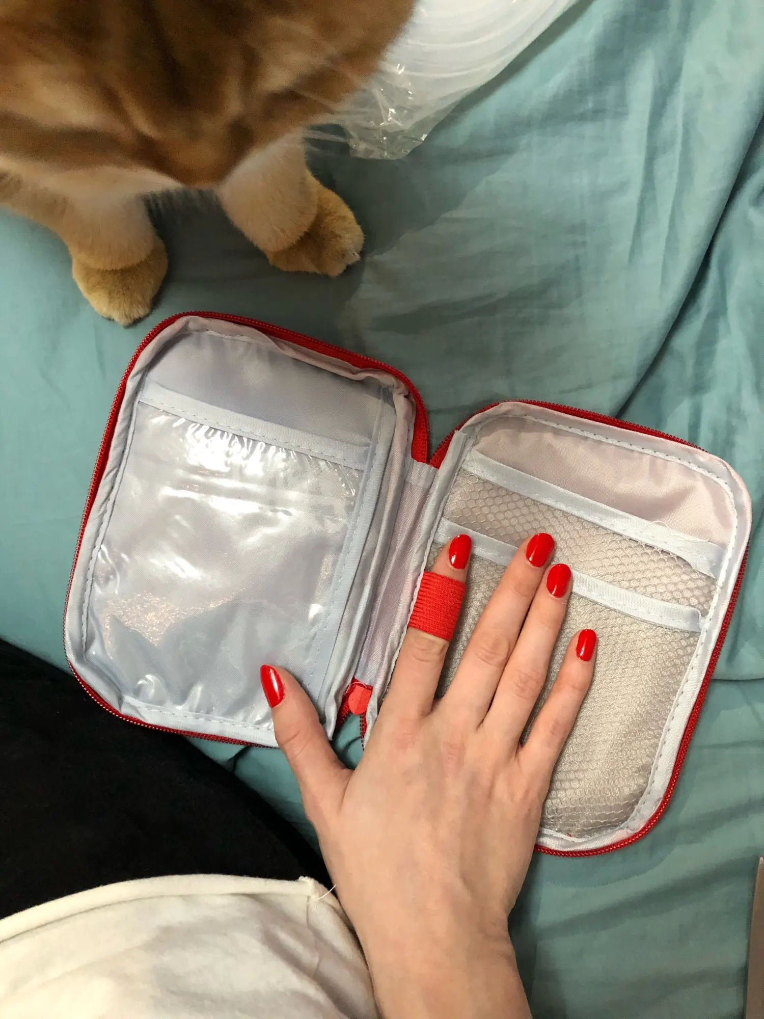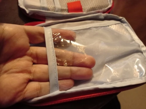 Заказала небольшой размер, чтобы сложить все лекарства в 1 месте. Выгдядит аккуратной и компактной. Торчащих ниток не было, застегивается без проблем. Хороший органайзер.