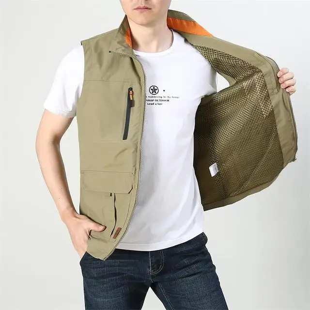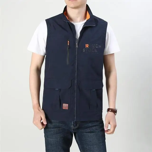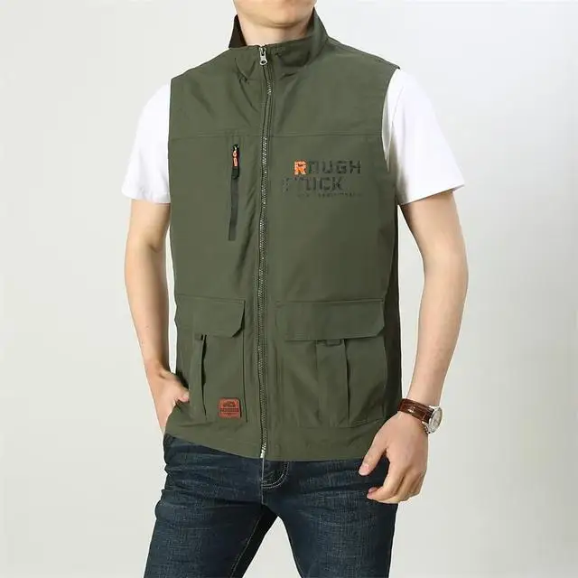 Мужской жилет-карго на весну и лето, повседневный брендовый жилет без рукавов, Мужская фотография, безрукавка, большой размер