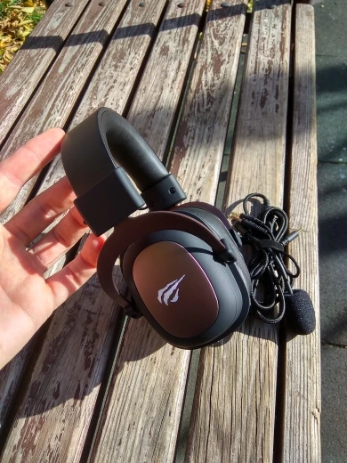Отличные наушники, звук объемный, есть басы. Если подрубить эквалайзер вообще великолепный звук. В комплекте есть разделитель на наушники и микрофон, но у меня ноутбук, так что не нужен, но приятно, что есть. Микрофон присоединяется штекером. Сам микро посредственный, но для Войс чатов прекрасен. Удобное оголовье, амбушюры не жмут, не нужно разнашивать, чтоб не давили. Есть металлические детали, конструкция не люфтит, все отлично собрано. Единственный минус - коробка в пути сильно помялась, но наушники остались целы. Огромное спасибо