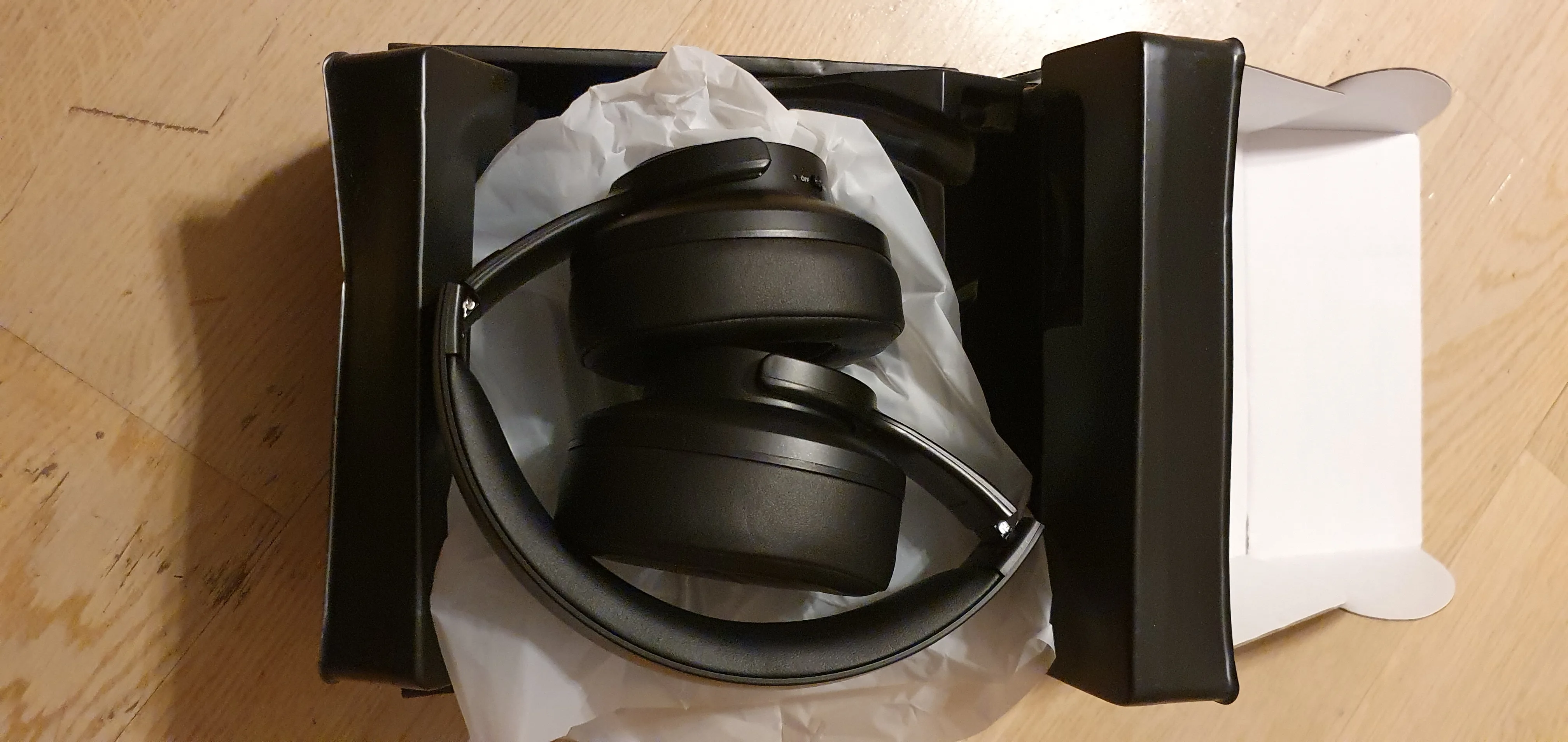 Отправили через день. До Одессы за 2 недели. Новая почта. Упаковано отлично (три слоя "пупырки", плюс полиэтилен). Коробка без малейшего изъяна (на фото). Звук отличный (басы насыщенные), что по проводам, что по блютуз. Покупал в основном для ТВ. Подключились без малейших проблем. Кнопки переключения треков, при подключению к ТВ, переключают программы. Амбушюры очень мягкие (качественные, как хорошая кожа), комфортно сидят. В общем 5 баллов, рекомендую и продавца и уши.
