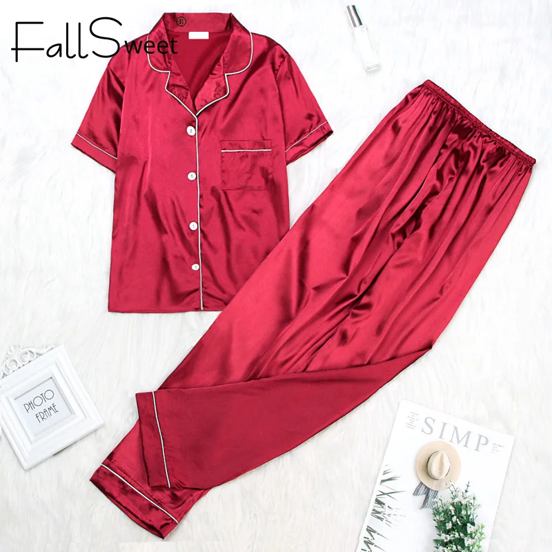 Женский пижамный комплект Fallsweet, шелковая однотонная пижама с V-образным вырезом, набор одежды для сна, размер 5XL