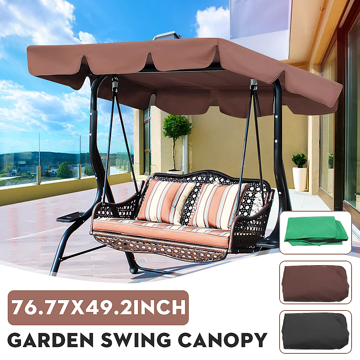 Имя:195x125 см черный/коричневый/зеленый поворотный верхний чехол сменный балдахин Описание товараМатериал: полиэфир кв. МЦвет: черный/коричневый/зеленыйРазмер: 195 х125 см Особенности:●Эффективная вредная Блокировка УФ и водоотталкивающая способность.●Устойчивость к плесени, выцветанию и пятнам.●Прочные усиленные углы.●Дополнительный изящный фестончатый. Применение:Кресло-качели для двора Посылка входит1 навес Предупреждение:Данное изделие содержит только балдахин.