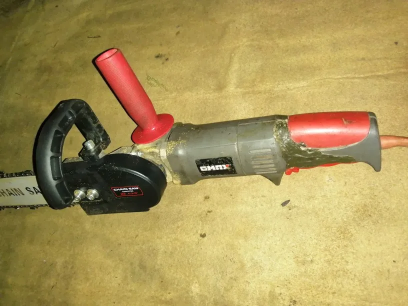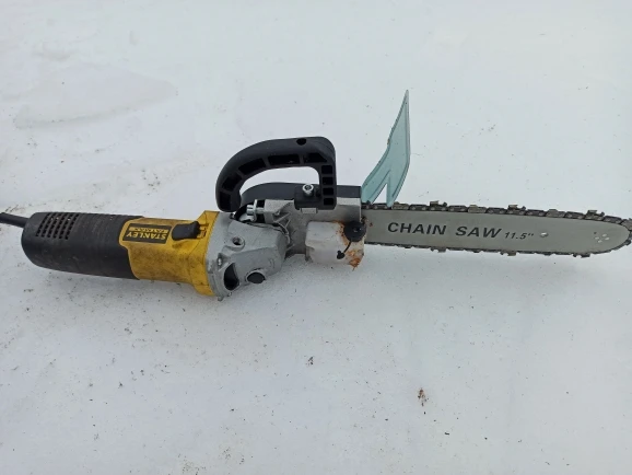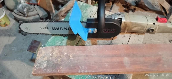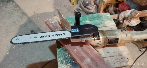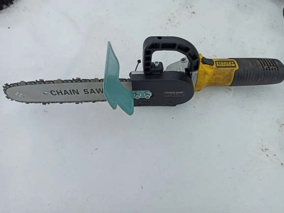 Приспособление работает отлично, машинка Bort круг 125, мощность 900 Вт, 11000 оборотов. Распиливал ветки деревьев ,диаметр 100 мм режет свободно.