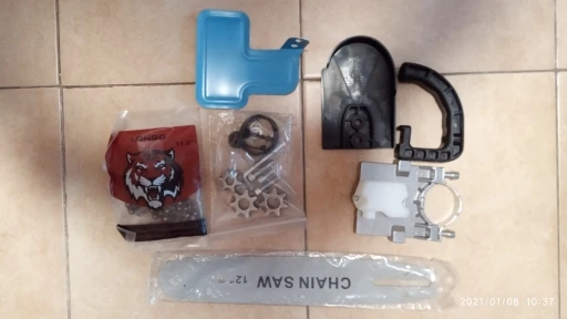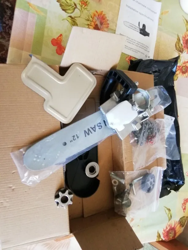 пришло за 35 дней,долго пролежало на китайской таможне. Посылкой , как буд-то играли в футбол,или ей до этого работали ,но собрал, подогнул где надо ,запустил---цепь слетела ,перебрал ещё раз - вроде держится попили посмотрим . Надо придумать зубья вырезать , приделать для удобства. На фото косяки видно.
