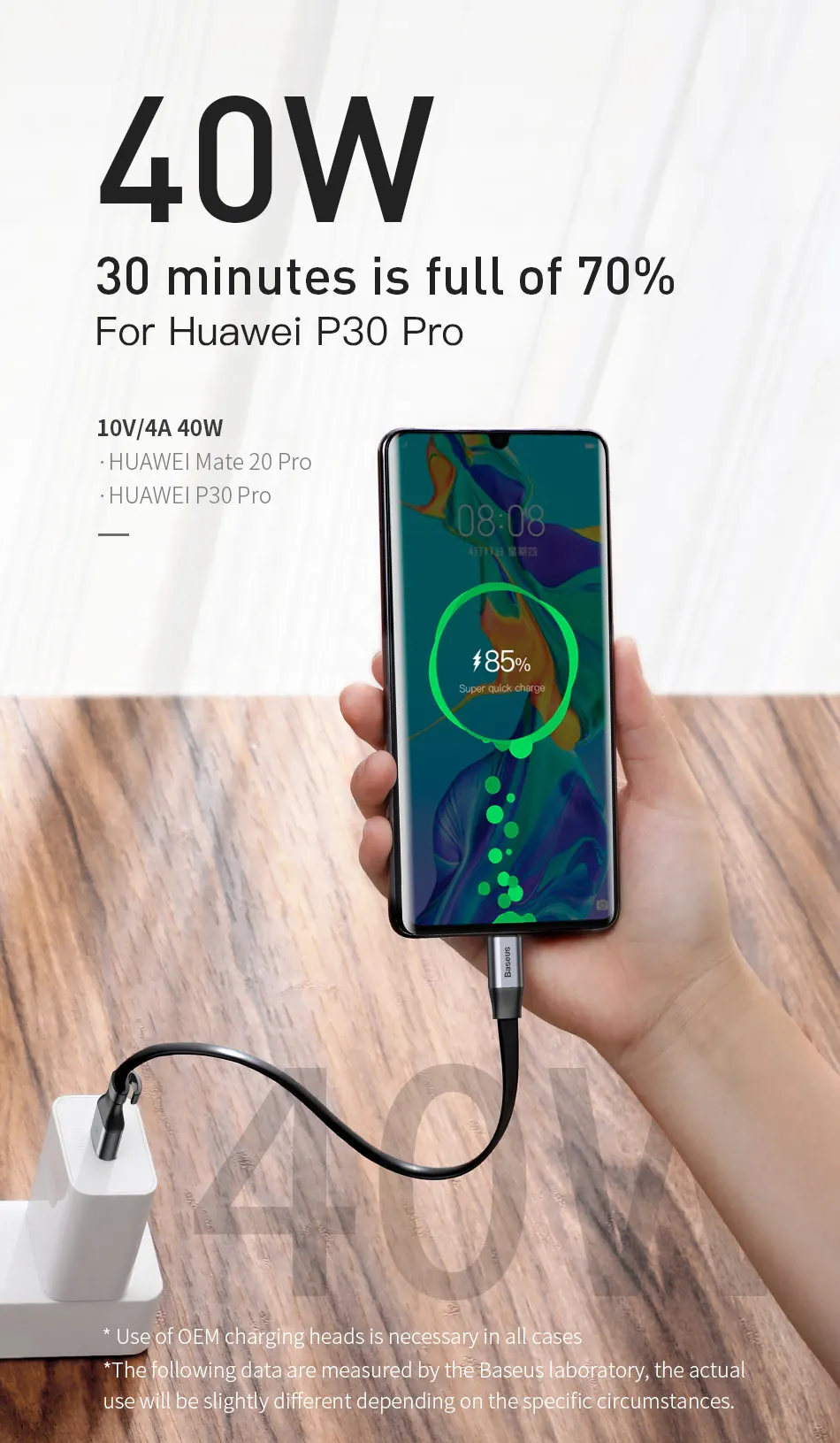 Кабель Baseus usb-c, 5 А, для Huawei P30, P20, Mate 30, 20, P10 Pro Lite, с функцией быстрой зарядки, для Xiaomi