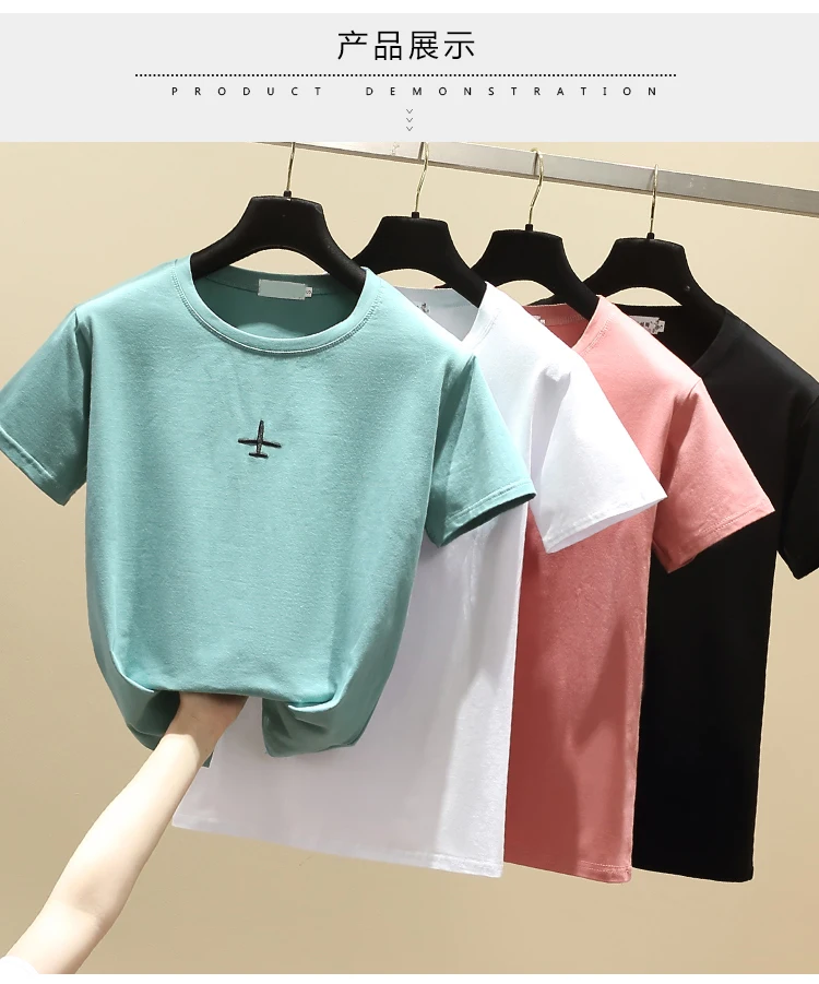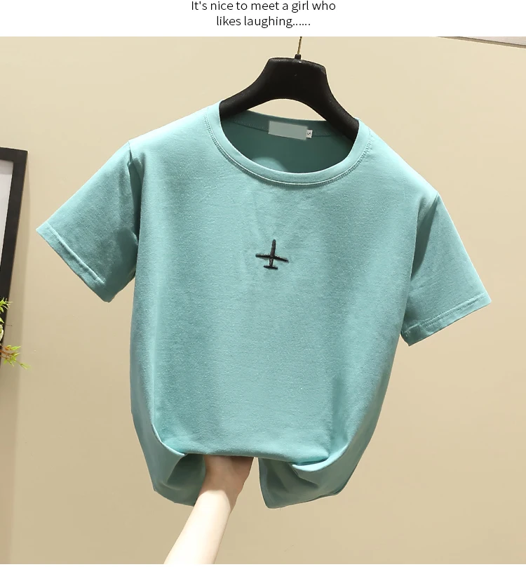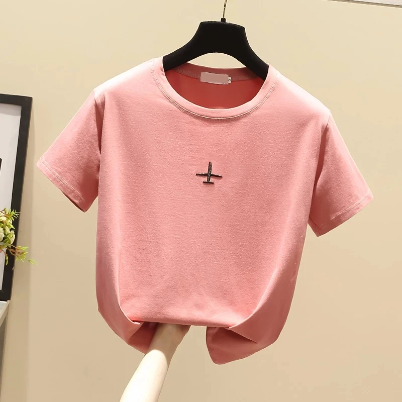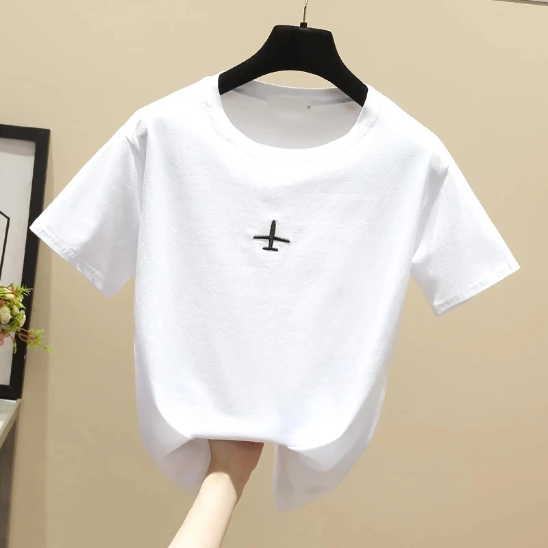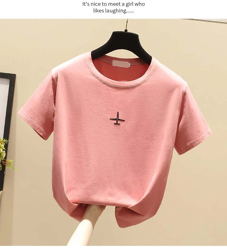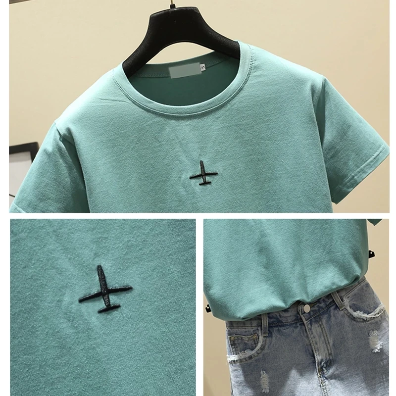 Футболка женская с вышивкой, летний топ с коротким рукавом Женская хлопчатобумажная рубашка, Корейская футболка, Femme Camisetas Mujer Verano 2021