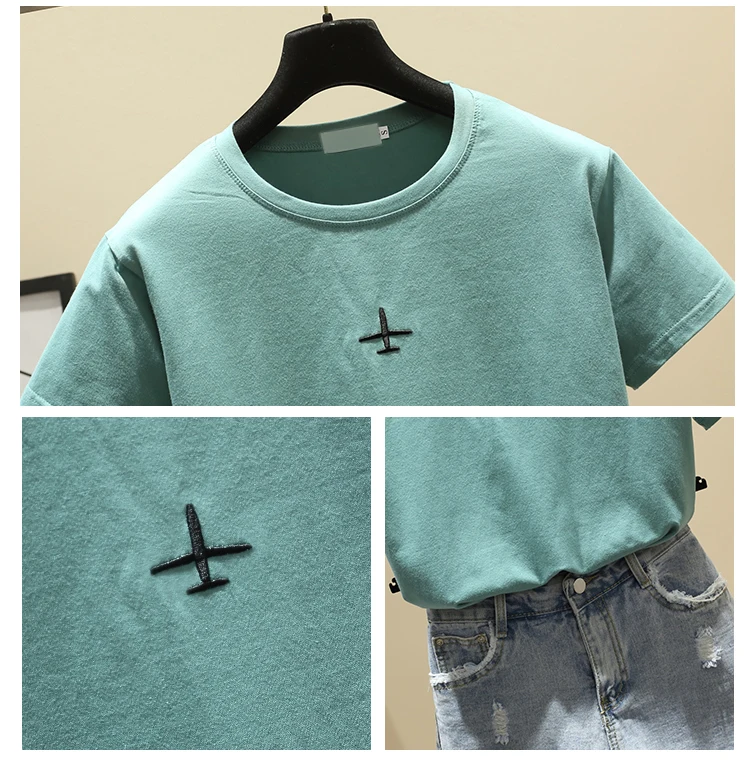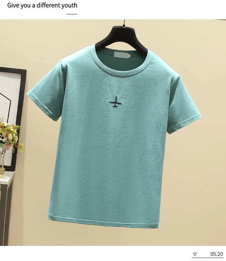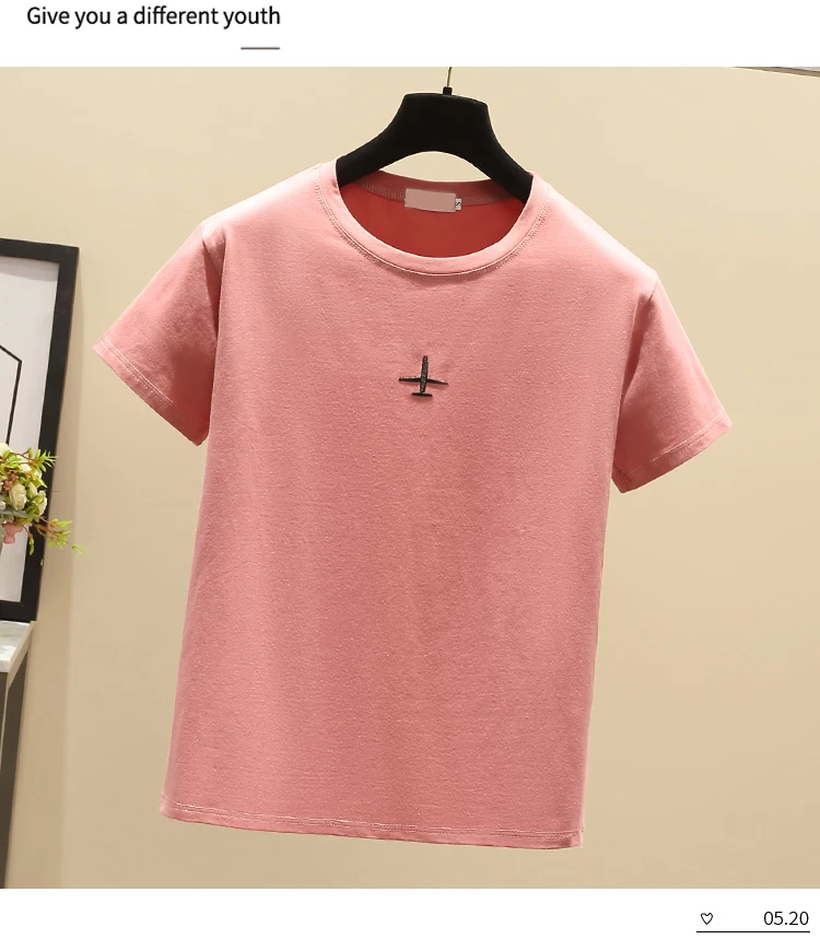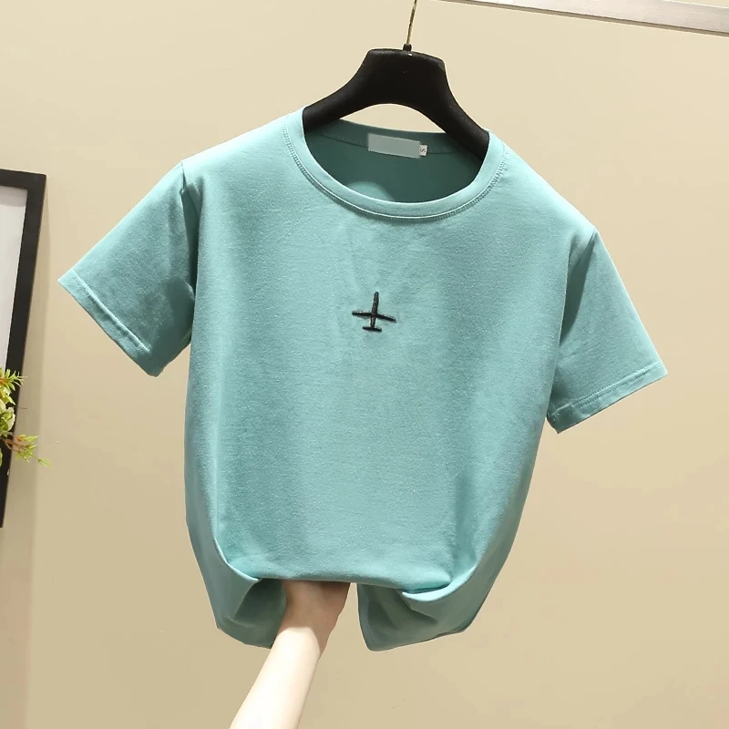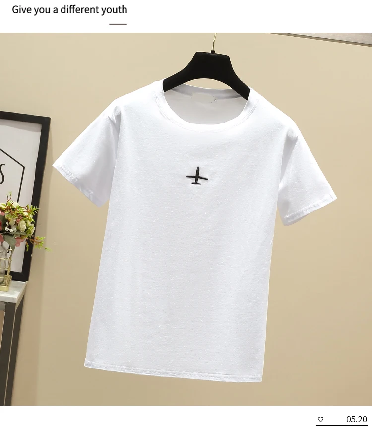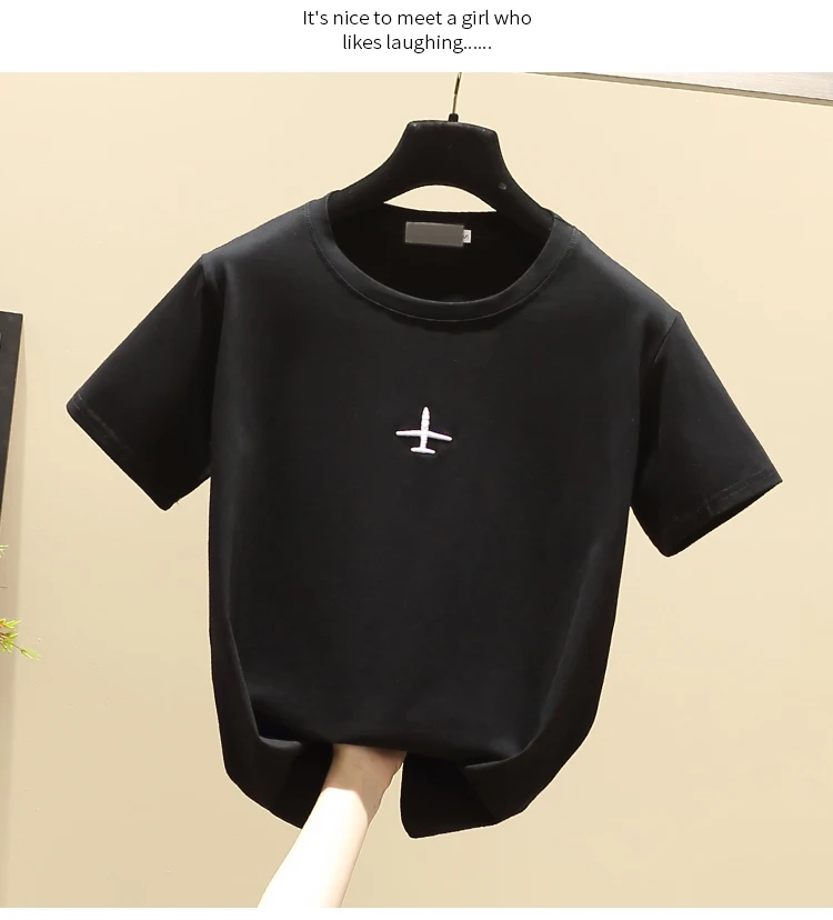 Футболка женская с вышивкой, летний топ с коротким рукавом Женская хлопчатобумажная рубашка, Корейская футболка, Femme Camisetas Mujer Verano 2021