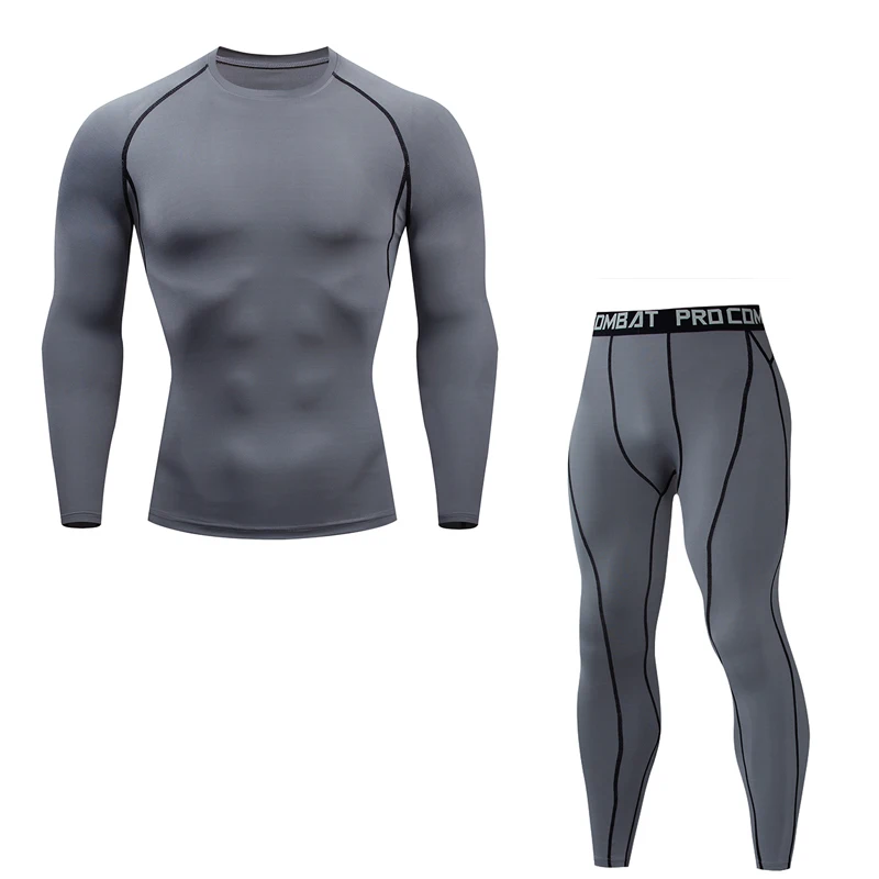 Мужская компрессионная спортивная одежда, набор леггинсов для бега + футболки, рубашка для фитнеса, Мужская компрессионная футболка с длинным рукавом, набор Рашгард, спортивные штаны, мужская одежда ММА, базовый слой, S-4XL, Европейский и американский размер, бесплатная экспресс-доставка