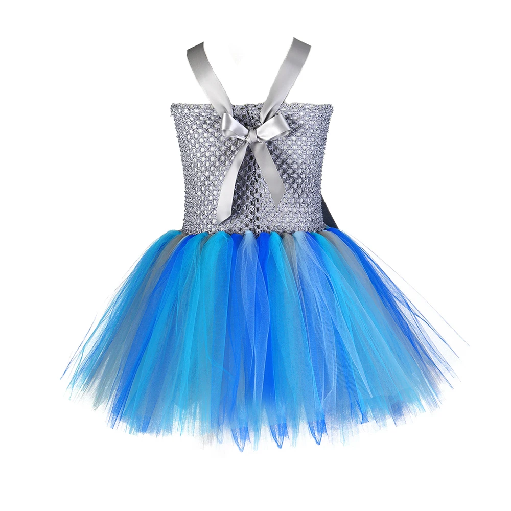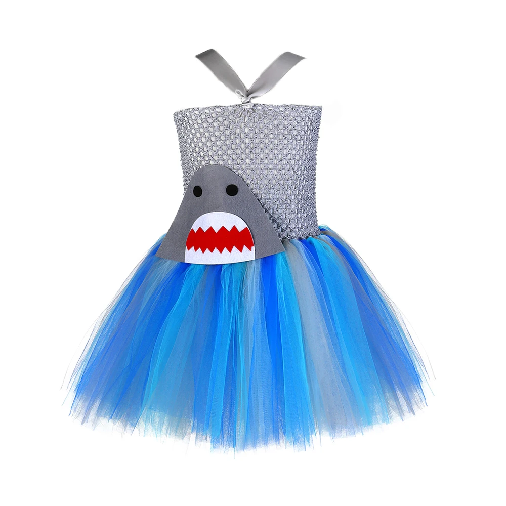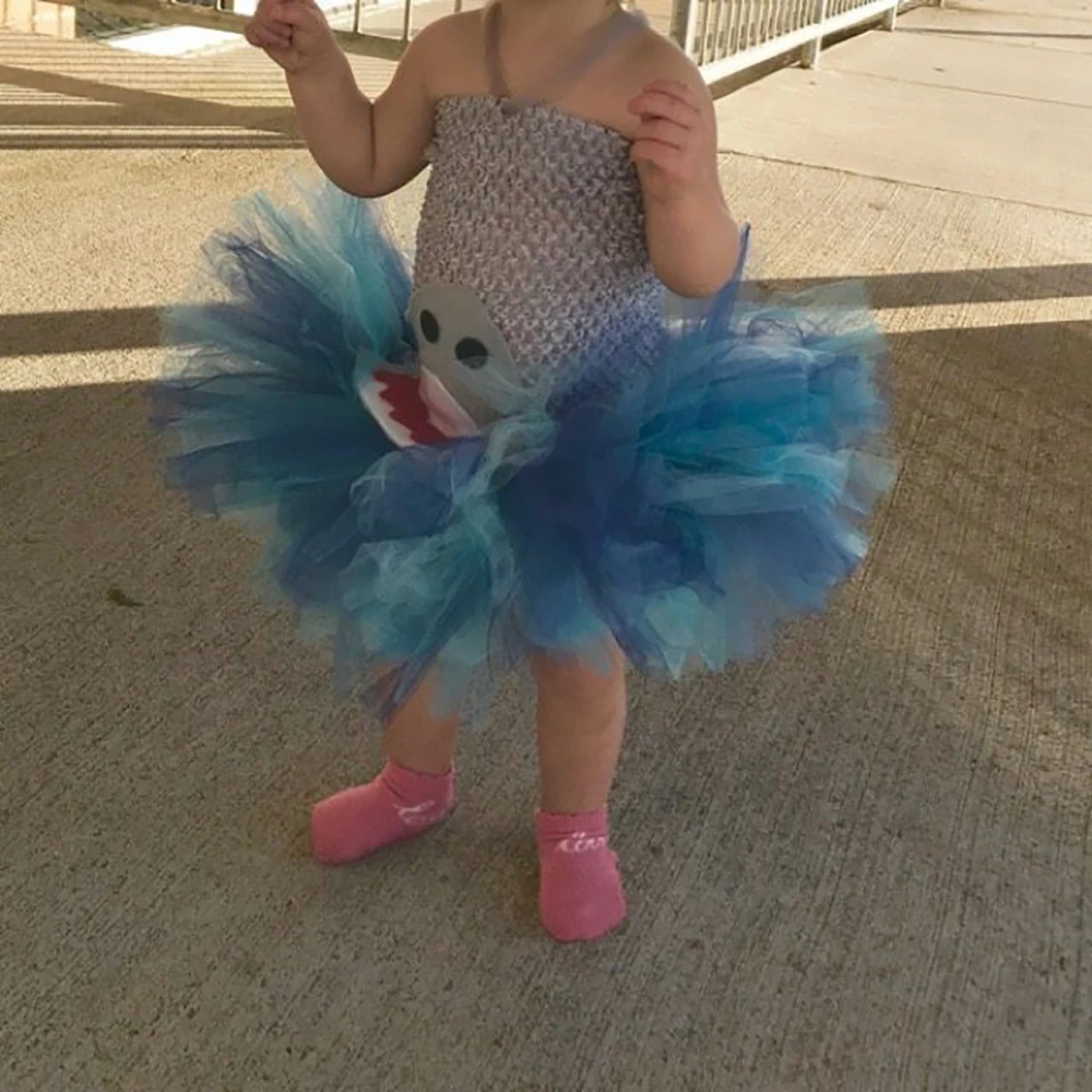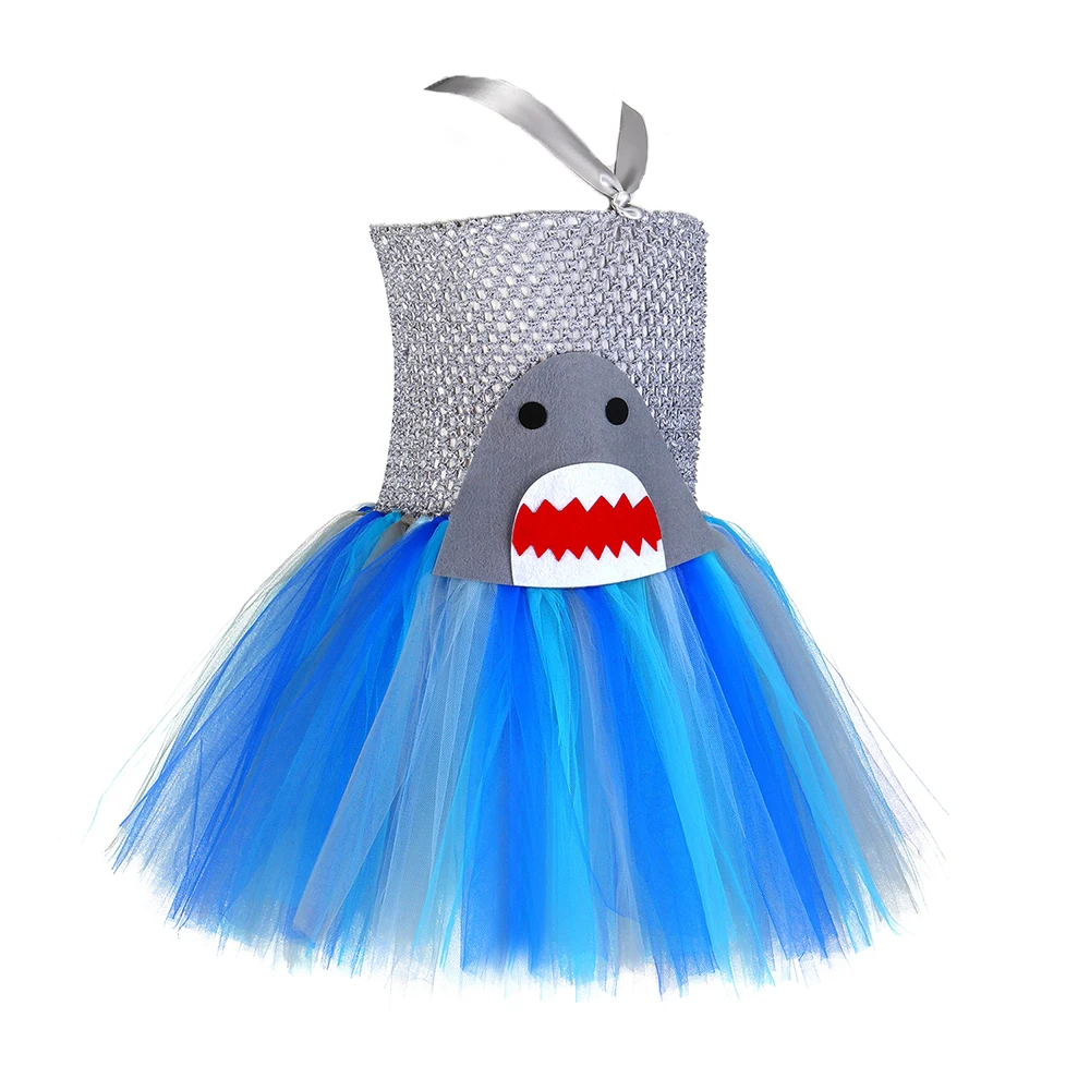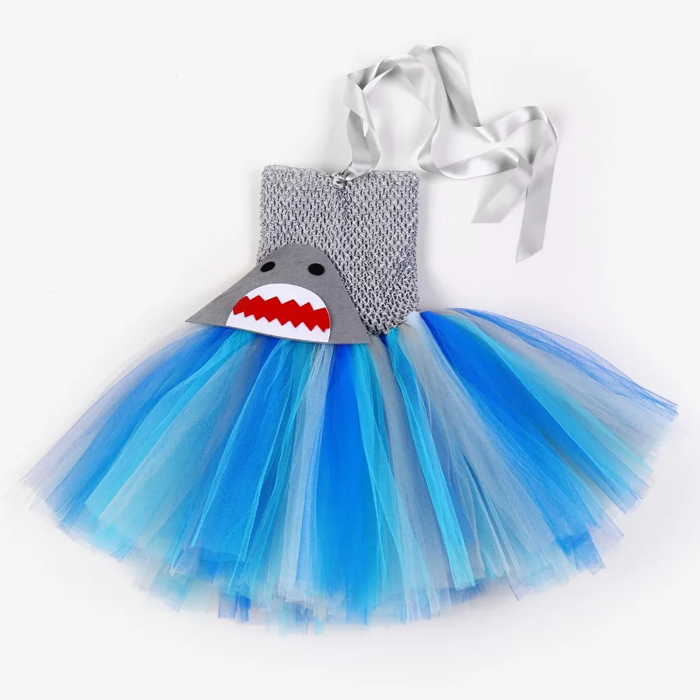 Серое, голубое платье-пачка с изображением акулы для девочек, маскарадный костюм с пушистой акулой для маленьких детей, вечерние платья на день рождения, Хэллоуин