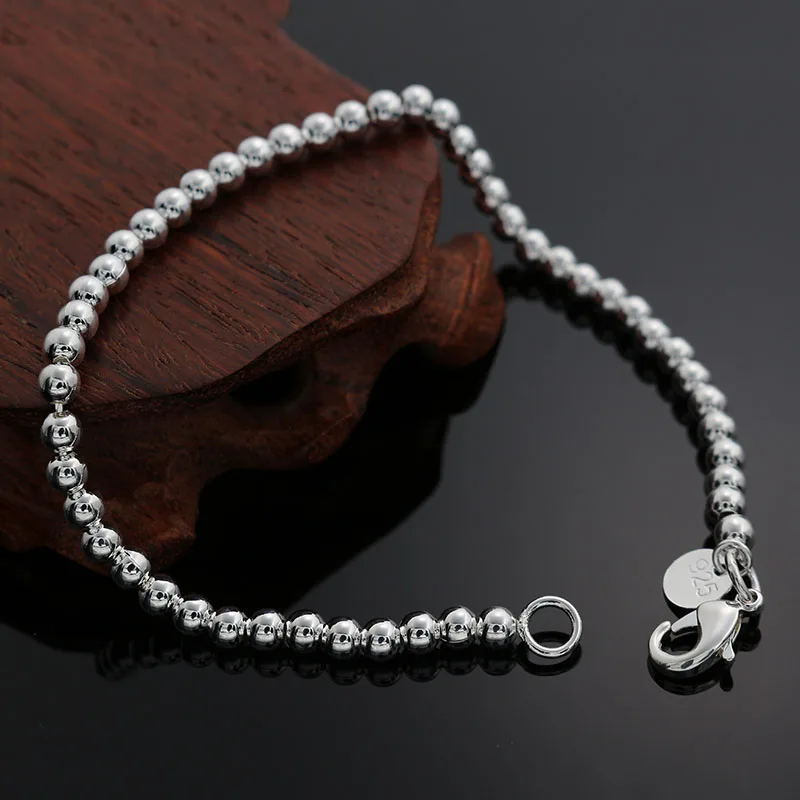 Женский браслет с бусинами 4 мм, цепочка золотого и серебряного цветов, H198