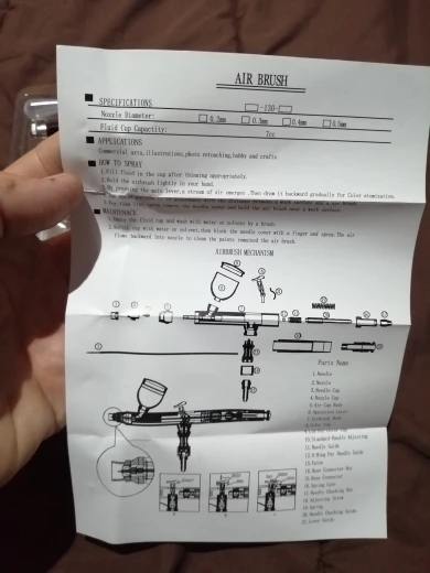 Аэрограф описанию соответствует. Доставка очень быстрая. Приехало все целое, внешне. В работе пока не проверял.