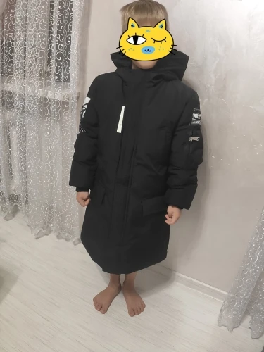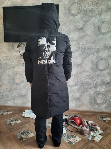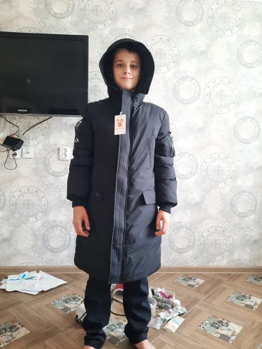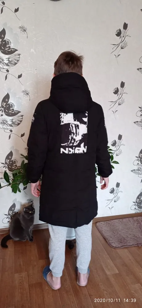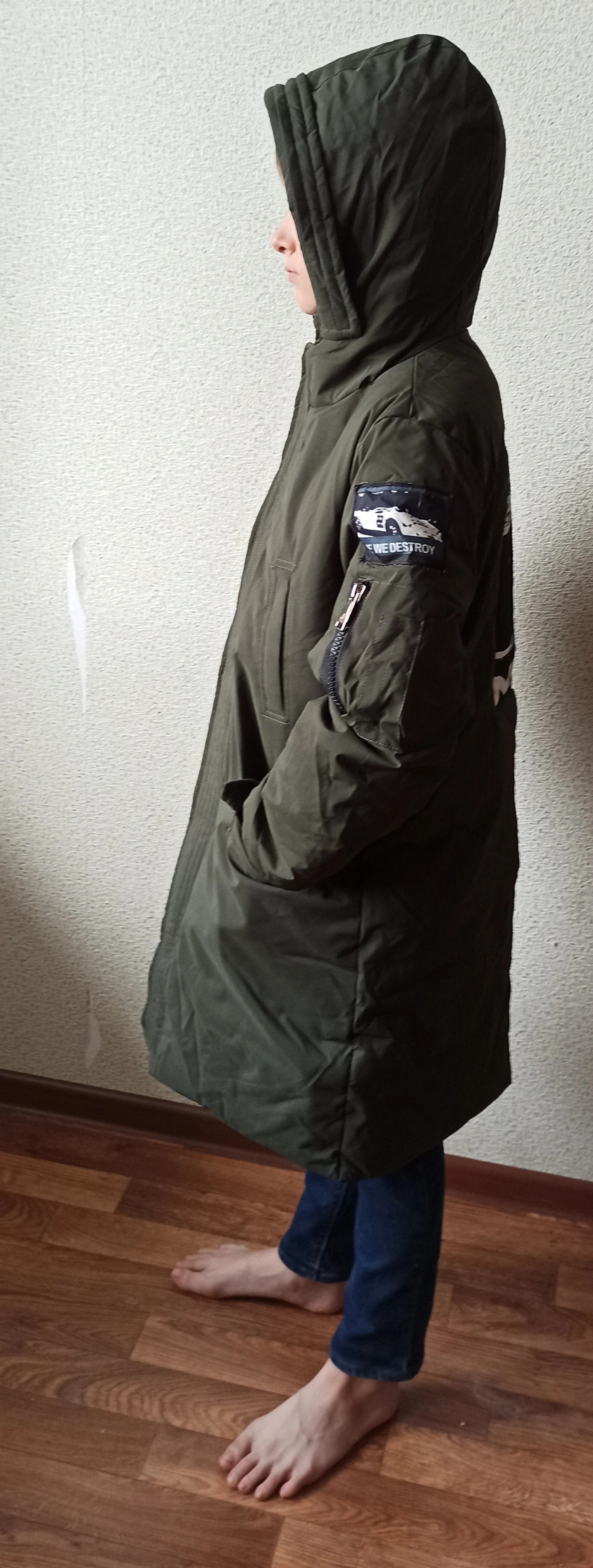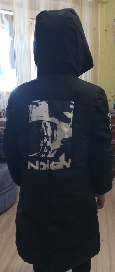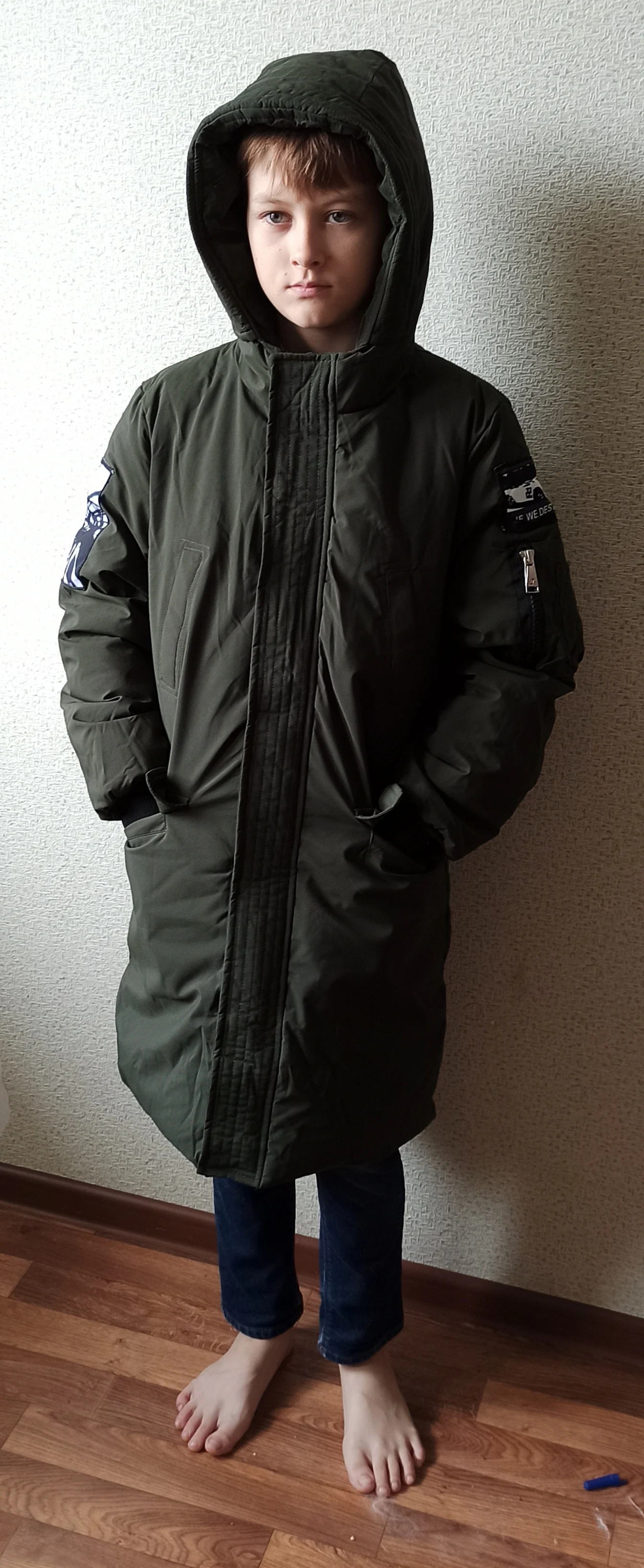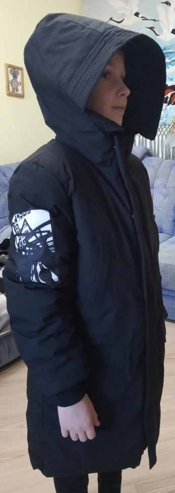 куртка пошита хорошо но тонкая до -15 подойдёт. послушала совета и взяла на размер больше оказалась большой ниже колен и рукава длинные но это не заметно выглядит как пальто на три сезона хватит. у моего ребёнка рост 146 взяла 13т можно было на размер меньше. доставка до России 23 дня