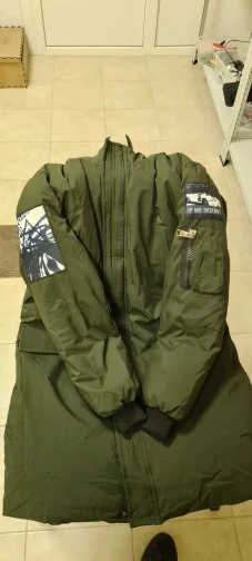 Очень качественная вещь. Выполнена без косяков. По шитью у нас всё очень хорошо. Брали самый большой размер на мальчика ростом 160 см. Парень у нас худощав,поэтому куртка кажется большой,но если бы взяли меньший размер,в рукавах куртка была бы мала. Покупкой в принципе довольны. Стоящая покупка✌