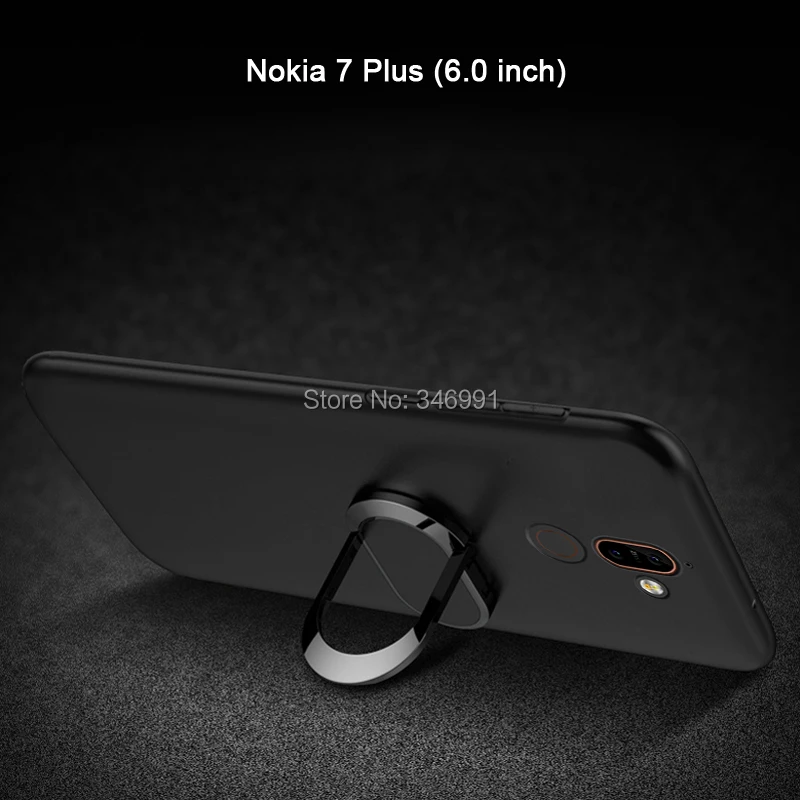 Мягкий черный из силикона/ТПУ, чехол для Nokia 7 Plus (2018), Дисплей 6,0 дюймов 。 красный 、 черный 、 голубого цвета с металлическим кольцом для пальца.