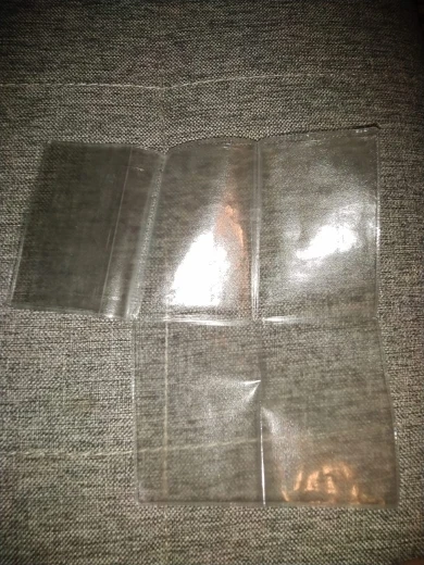 Кармашки пропаяны по краям, пленка гладкая и прозрачная, документы входят туго