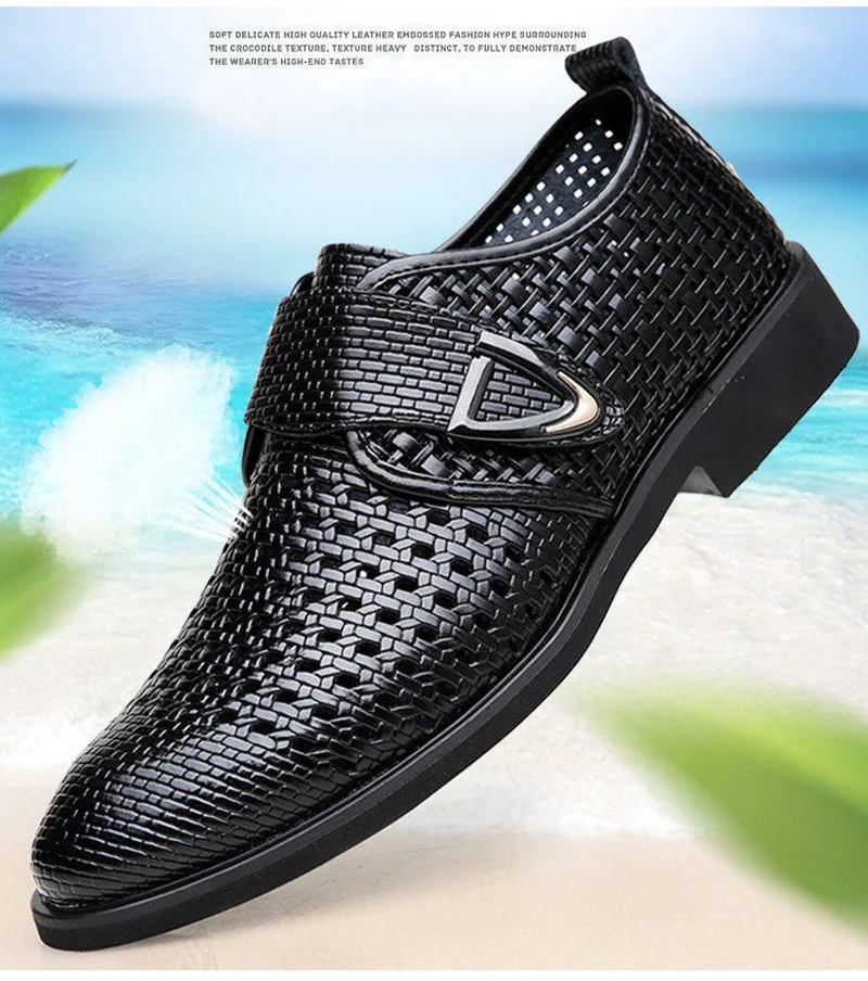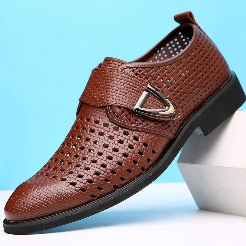 Туфли мужские кожаные с перфорацией типа броги, дышащие повседневные туфли с отверстиями, черная обувь, KA1388, лето, 2021