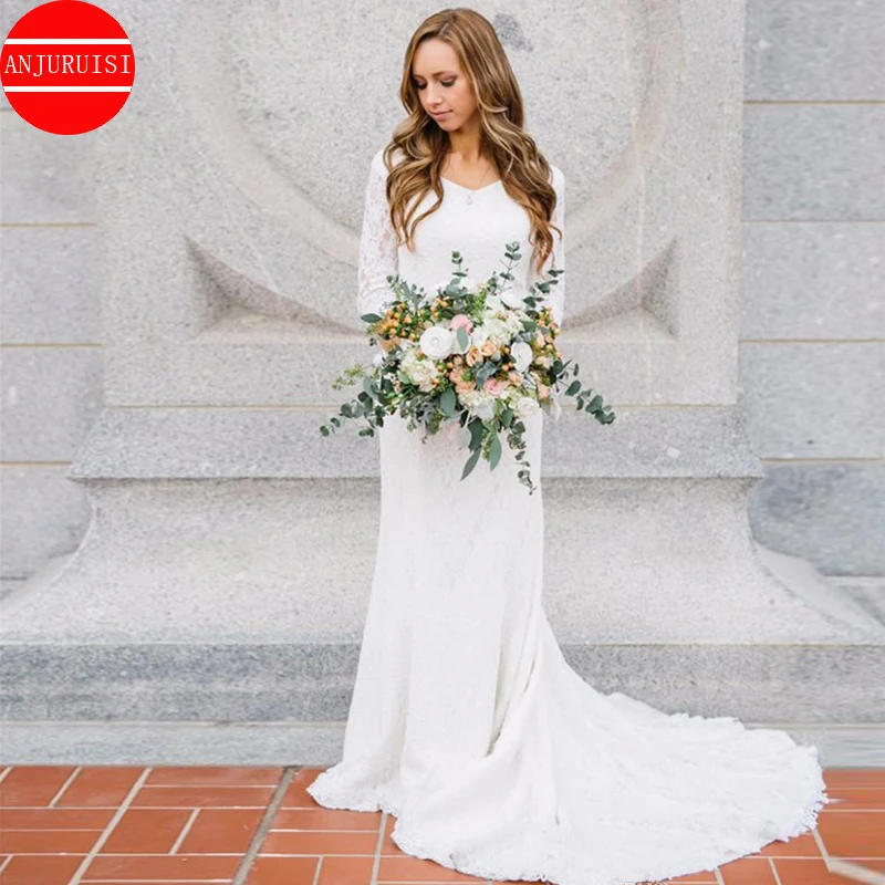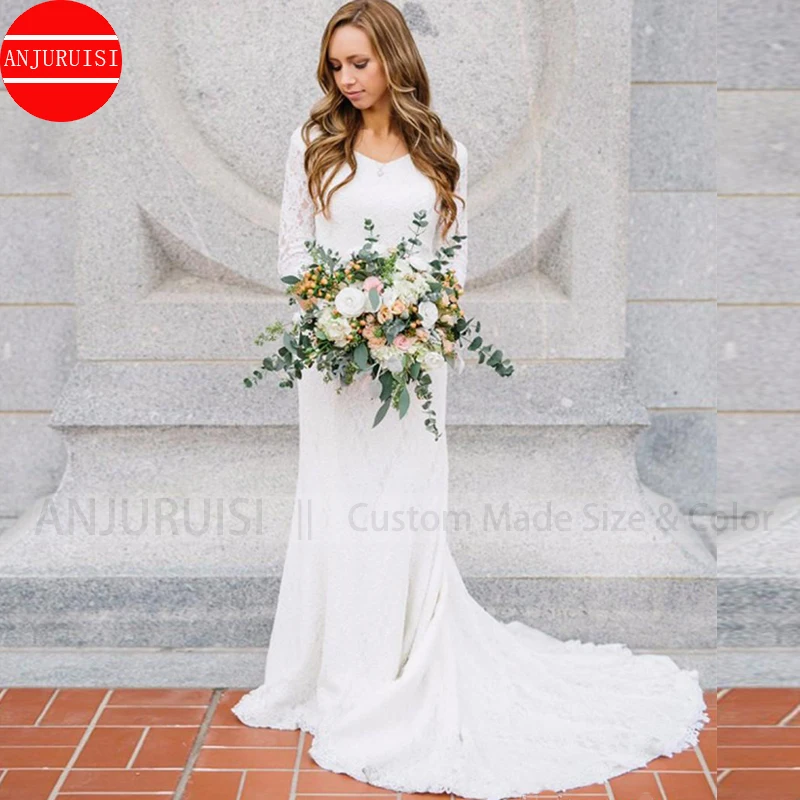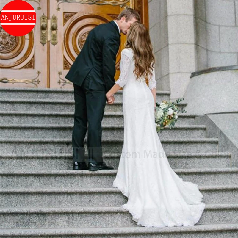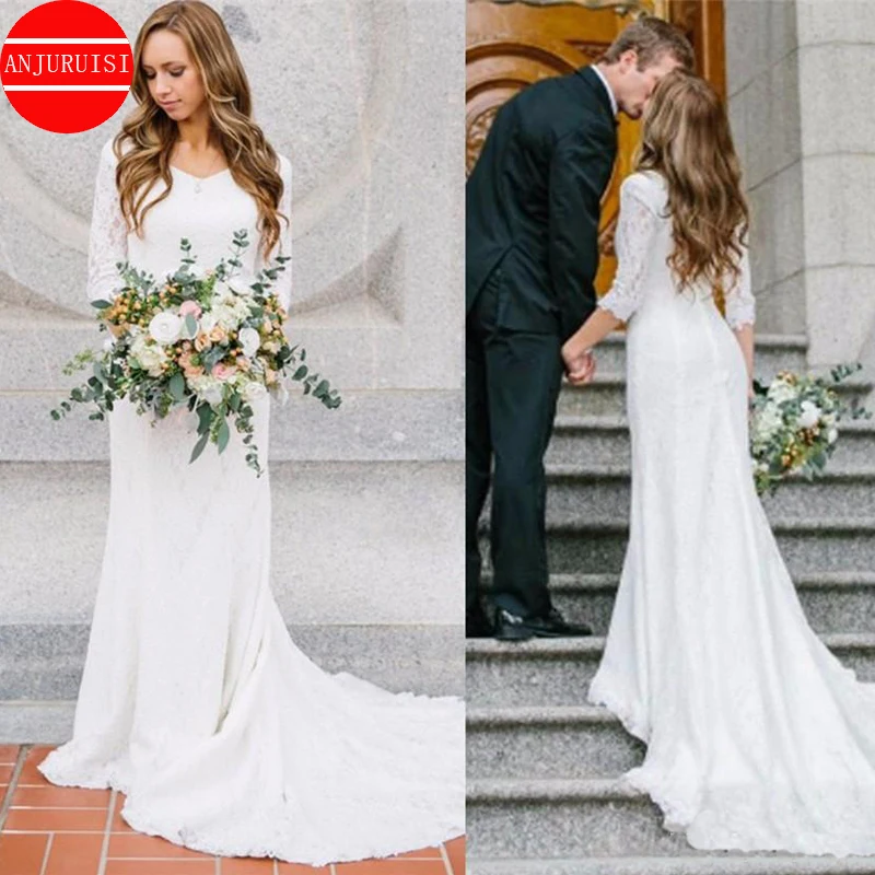 Свадебное платье в стиле бохо с рукавами три четверти, винтажные кружевные свадебные платья русалки 2020, с v-образным вырезом, простое платье fiesta