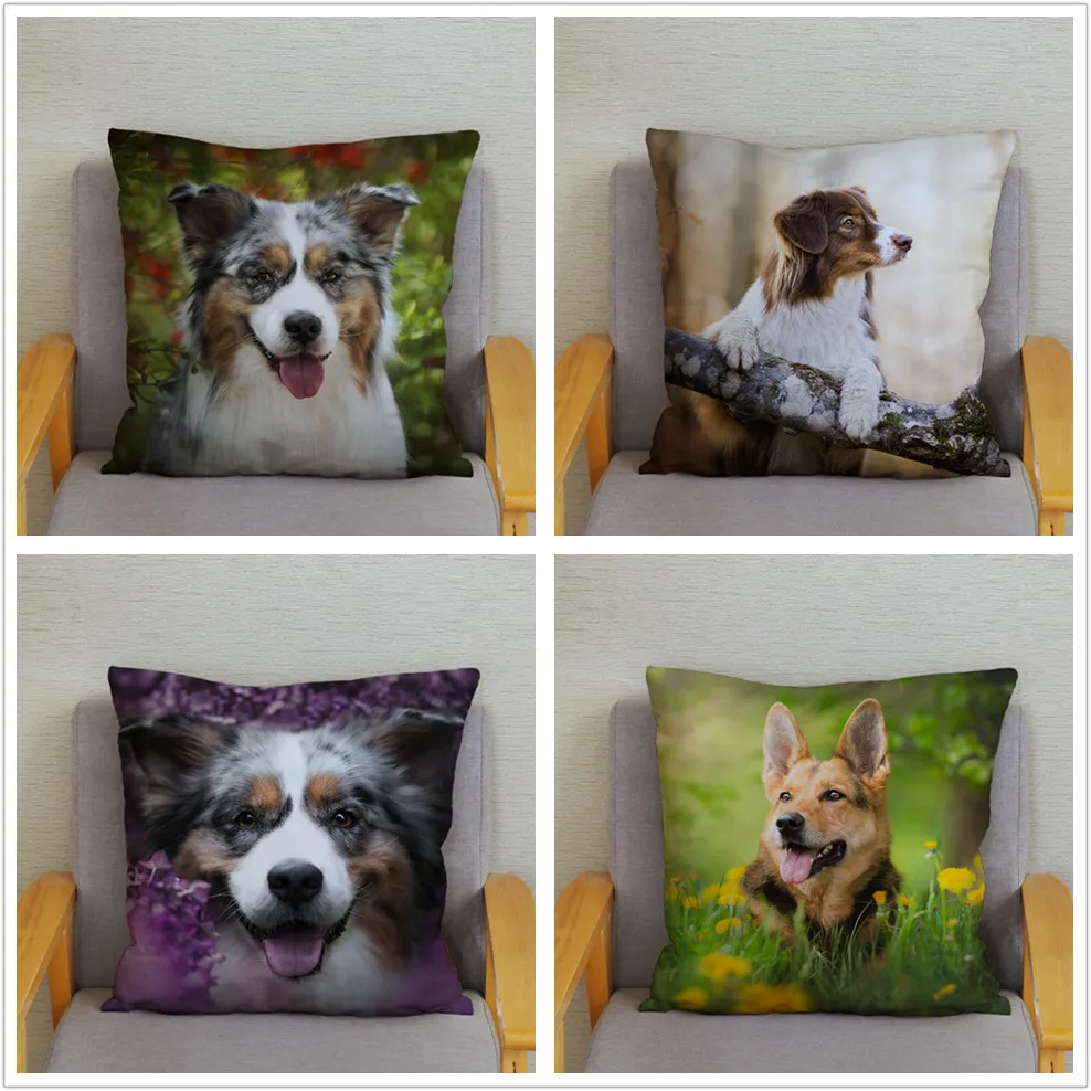 HD Австралийские овчарки чехол для подушки с принтом супер мягкие короткие плюшевые ботинки наволочки диванных подушек Чехлы наволочка для домашнего декора