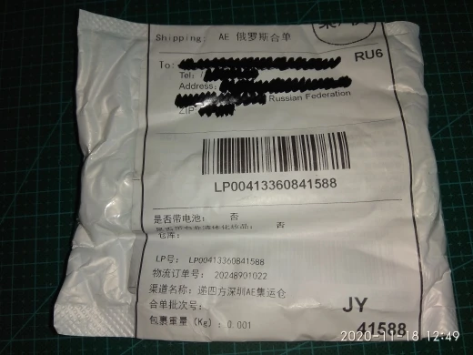 Страна: RU Dimensions: NO3 Доставка: ePacket 12.01.2021