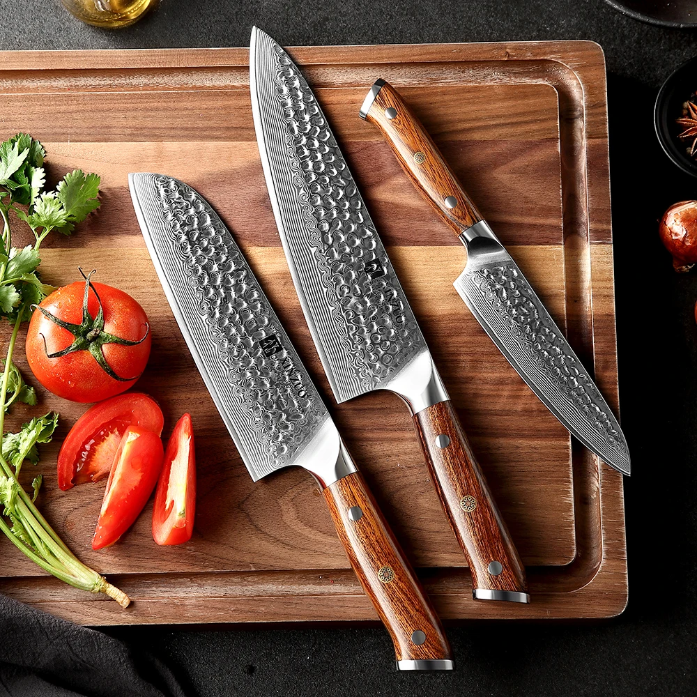 XINZUO Yu Серия 3 шт Дамасская сталь набор ножей