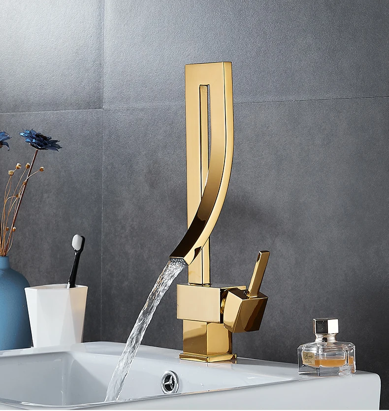 Крепление на палубу латунный позолоченный Креативный дизайн смеситель для раковины для ванной комнаты Водопад для умывальника Золотой смеситель для раковины G1101