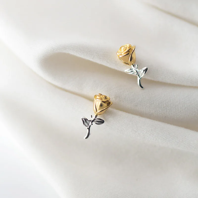 Подлинные серьги-гвоздики из стерлингового серебра 925 пробы с розовым цветком для женщин Изящные ювелирные изделия в растительном стиле милый подарок для девочек