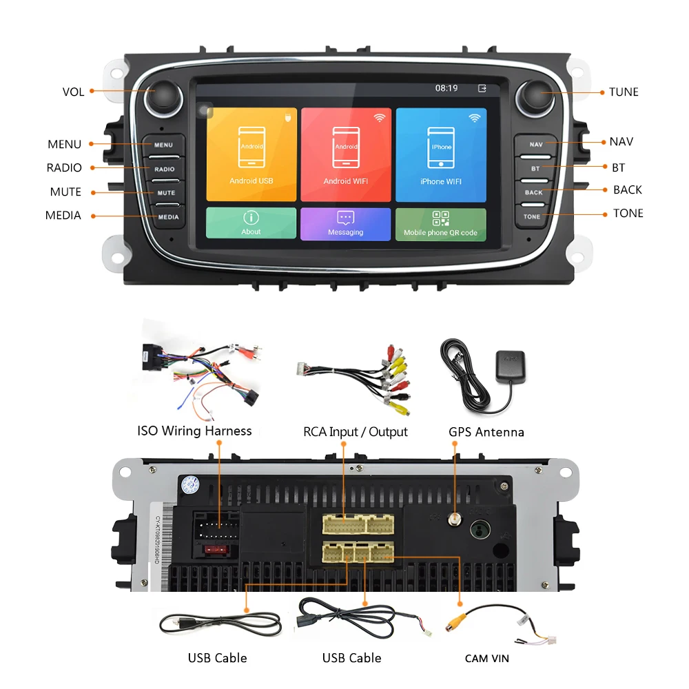 Для Focus II (2008-2011)Для S-Max (2008-2011)Для Mondeo 9 (2008-2011)Для Galaxy II (2006-2011)Для C-Max (2008-2011)Для Kuga (2006-2011)Особенности:1. Обновленная двойная зеркальная ссылка системы: зеркальная ссылка IOS/AndroidIOS airplay:IOS поддерживает одностороннюю проекцию мобильный телефон на машинуДвусторонняя связь Android: Android поддерживает двустороннее соединение мобильный телефон2. 7-дюймовый HD Автомагнитола MP5 плеер с емкостным сенсорным экраном TFT3.CANBUS в комплекте: CANBUS может помочь реализовать синхронизацию информации в реальном времени, что делает управление автомобилем более интеллектуальным и точным4. Функция видеорегистратора: видеоплеер может подключать Dash Cam era и обладает всеми функциями видеорегистратора, циклической записи, автоматического обнаружения аварии, упаковочного монитора5. Встроенный Bluetooth 4,0 с A2DP/Hands Free/телефонной книгойПоддержка громкой связи BluetoothМузыкальный плеер с BluetoothАвтозагрузка телефонных книгАвтозагрузка записей6. Встроенная электронная инструкция: отвечайте на ваши вопросы в любое время7. Встроенный Wi-Fi: Подключитесь к Wi-Fi, и вы обретете новый мир, самым удобным является онлайн-карта.8. Обучение рулевому колесу: с помощью него вы можете управлять необходимыми функциями с помощью рулевого колеса, что более удобно9. Встроенный gps-приемник, совместим с Waze/Navfree/Google Map и т. д.: до тех пор, пока есть пункт назначения, вы можете пойти куда угодно и никогда больше не заблудиться!10. Встроенная флэш-память 16 ГБ для музыки/данных навигационной карты/видео11. Высокое разрешение: 1024P Full HD дает вам фантастический опыт просмотра HD-видео12. Функция ввода камеры заднего вида: необходимо выбрать камеру, автомобиль подключен к реверсу для автоматического переключения (требуется дополнительно)13. Отключение питания с функцией автоматического сохранения памяти в режиме радио или TF/USB14. Поддержка регулировки логотипа экрана загрузки, виды логотипа автомобиля можно настроить самостоятельно15. Выбор различных звуковых эффектов эквалайзера16.FM-радио: вы можете слушать трафик в реальном времени, новости, прогнозы погоды и т. д., чтобы утомительное Вождение не было однообразнымОсобенностиРазмер изделия: 227*119*56 ммСистема: AndroidЧип усилителя: TDA7388ОЗУ: 1 ГбПЗУ: 16 ГбРазмер экрана: емкостный сенсорный экран 7 дюймовРазрешение экрана: 1024*600Радиочип: MT6625Радио: FM (без AM/RDS)Радиочастота: 87,5 ~ 108 МГцМаксимальная выходная мощность: 4*45 Вт (макс.)Порты RCA: 2 аудиовыхода, 2 * AUX-in, 2 * Video-in, 1 * Video-out,1 * RCAM-in,Язык: китайский/английский/французский/немецкий/Россия/Испанский/Греческий/итальянский/Корейский/тайский/Датский/Чешский/Португальский/Турецкий/японский и т. Д.Продукт включен1 х Android плеер1 x Кабель Питания2 USB-адаптера1 кабель RCA1 Антенна GPS1 x CANBUS1 x Кабель CAM-VIN1 х Руководство пользователя