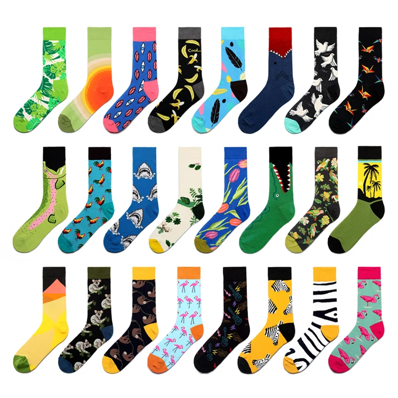 Мужские носки из чесаного хлопка Harajuku, яркие Веселые Длинные Теплые Носки с рисунком зебры и фламинго, мужские носки на свадьбу, рождественский подарок