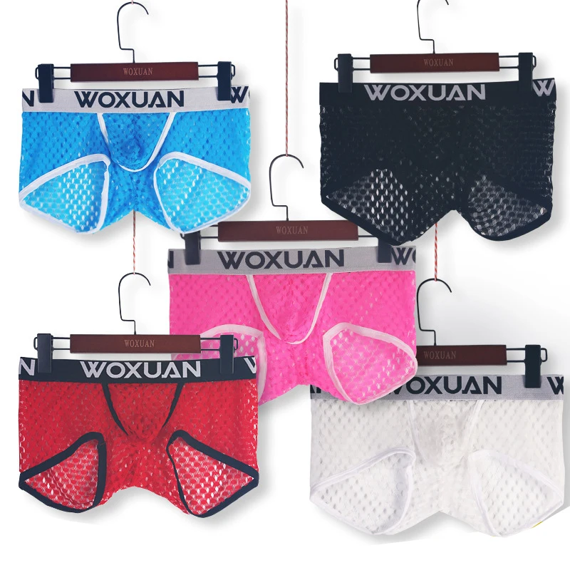 Нижнее белье WOXUAN, мужские сетчатые дышащие Прозрачные шорты-боксеры, летнее крутое сексуальное Сетчатое прозрачное Мужское нижнее белье, боксеры