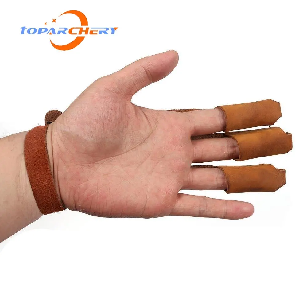 Защитная Экипировка для стрельбы из кожи, 2 ремня, перчатки для охоты с тремя пальцами