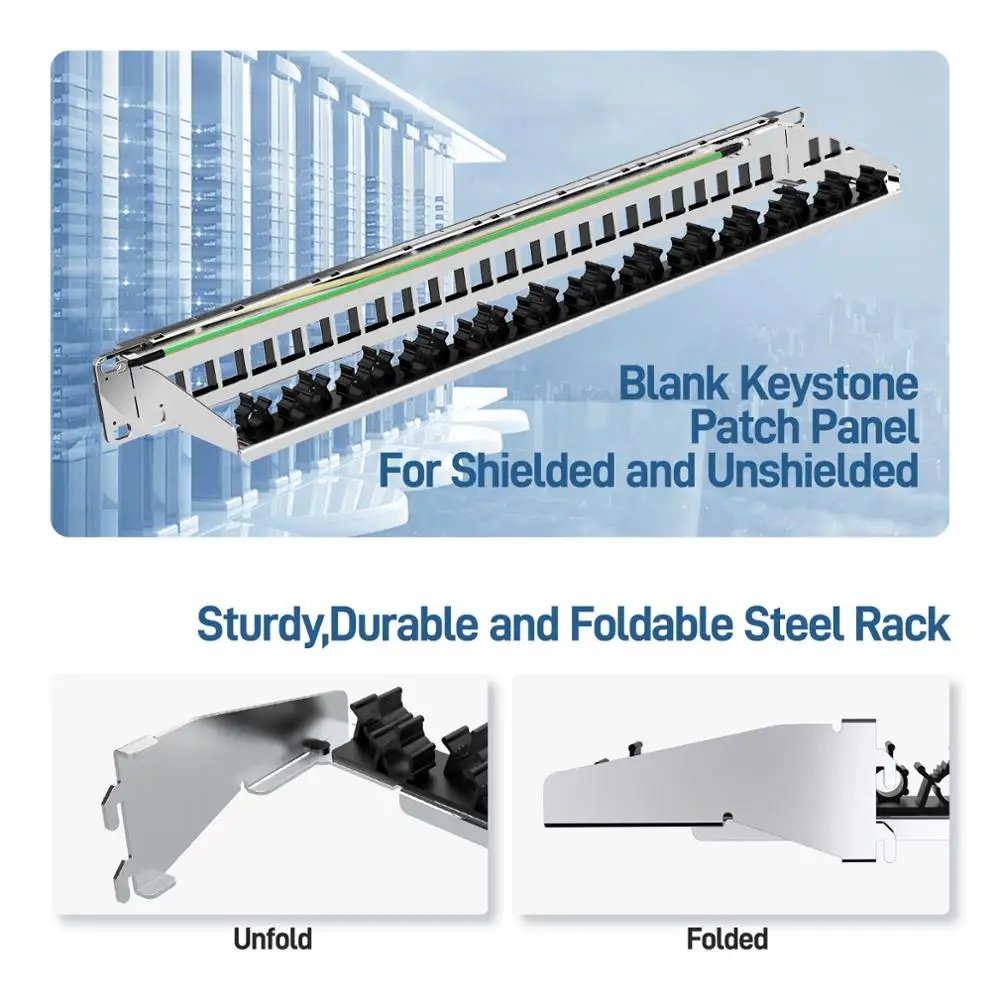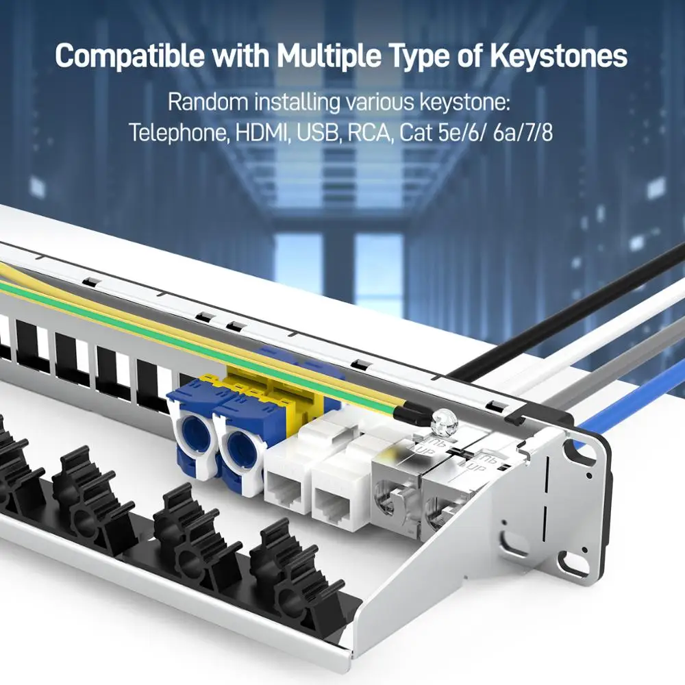 AMPCOM 24 порта 1U пустая Keystone патч-панель, 19 дюймов стойка или настенное крепление с задней панелью управления кабелем для Ethernet-кабеля