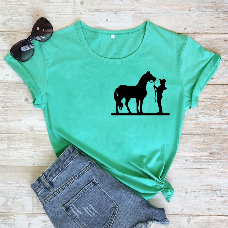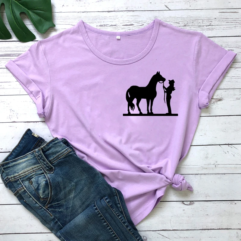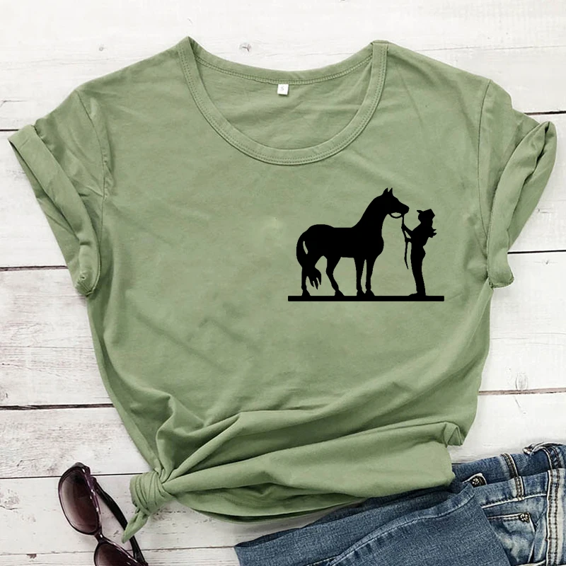 Футболка COWGIRL AND HORSE, винтажные футболки, гранж, tumblr, графический кавайный хлопок, модная женская футболка унисекс, футболки, топы