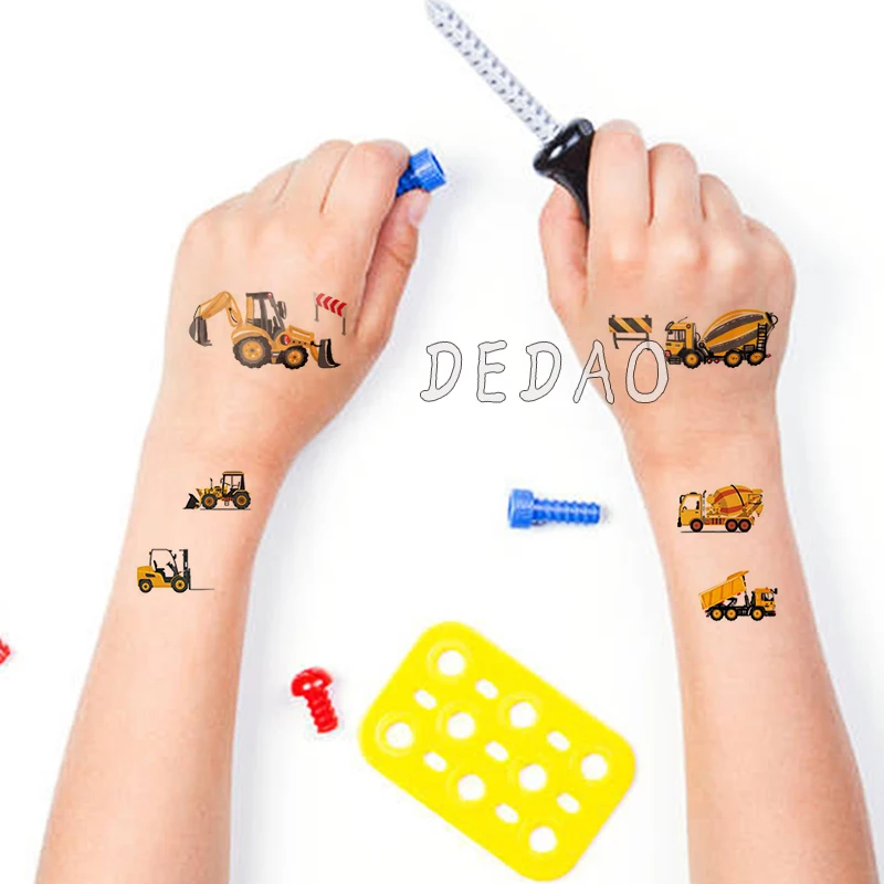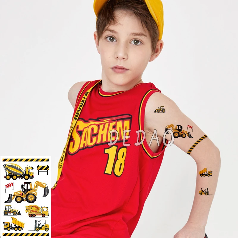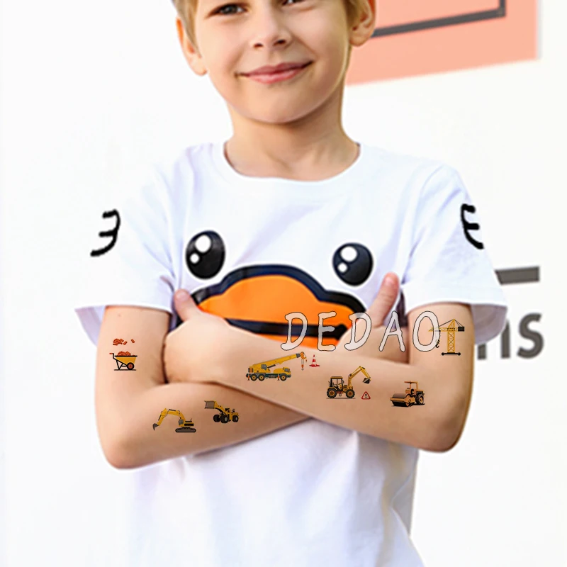 Водостойкая наклейка Временные татуировки, детская имитация татуировки, мультяшный автомобиль, экскаватор, татуировки флеш-тату, татуировки для детей, мальчиков