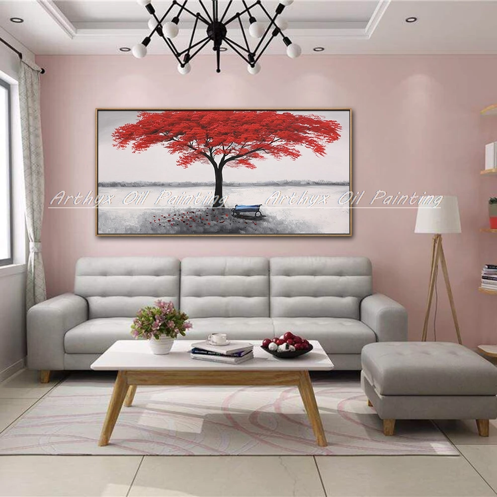 Артикс Искусство Большой размер Ручная роспись красное дерево масляная живопись на холсте Современные абстрактные настенные картины для гостиной домашний декор