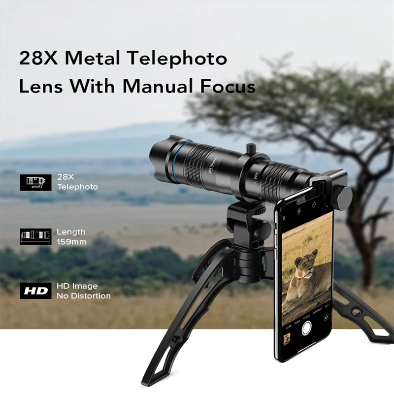Телеобъектив APEXEL HD 28X, зум, мобильный телефон, объектив камеры + мини-Трипод, Монокуляр с дистанционным затвором, телескоп, объектив для всех смартфонов