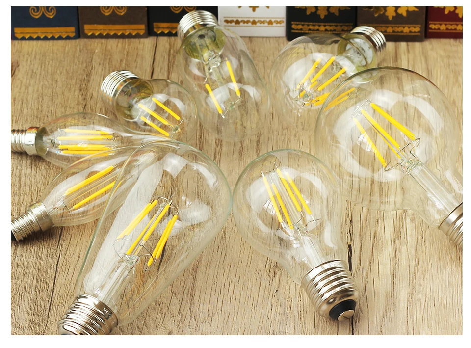 Светодиодная лампа накаливания ST64, G95, G80, A60, T185, 220 В, античная винтажная Светодиодная лампа Эдисона, 2 Вт, 4 Вт, 6 Вт, 8 Вт, стеклянные шарики, Светодиодный лампа