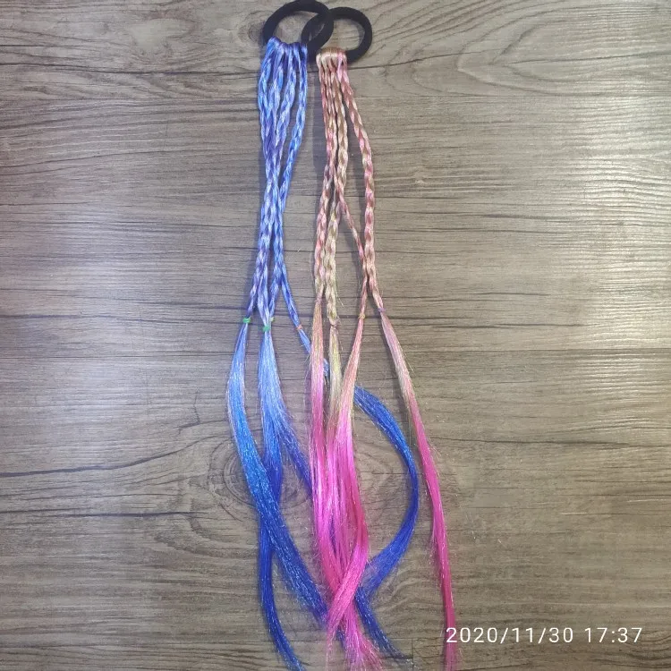 Заказ оформила 12.11.2020, оправили 13.11.2020, пришло 21.12.20 в г. Якутск. В одном большом пакете с остальными заказами. Упаковано в пупырчатый пакет. При вскрытии будьте аккуратнее, есть большой риск повредить изделие. Резинка темно коричневого цвета, хорошо тянется. Материал волос черного цвета жёсткий (как конский хвост), розовый помягче, есть красивый блеск и неприятный запах . Длина 4х косичек 40 см, шириной в 5мм. Цена была 51руб, с купоном вышло 21рубль. С продавцом не общалась