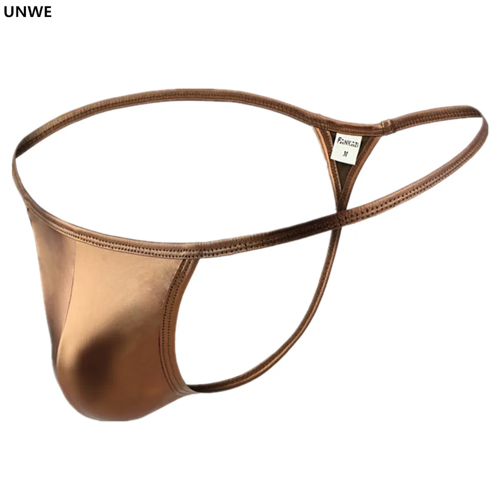 Мужское нижнее белье UNWE с мешочком для пениса, Эротическое нижнее белье из лакированной кожи для мужчин, стринги, Клубные мужские трусыстрингиТанга