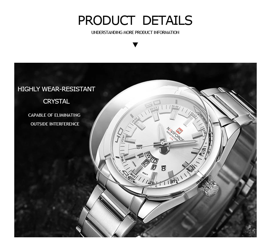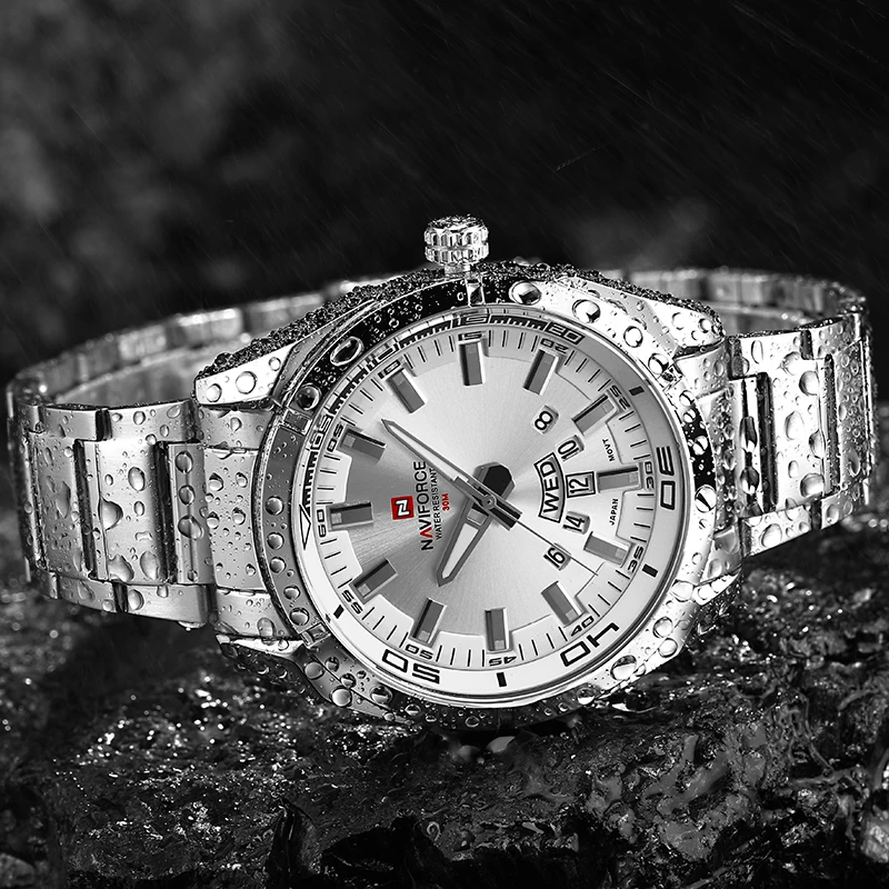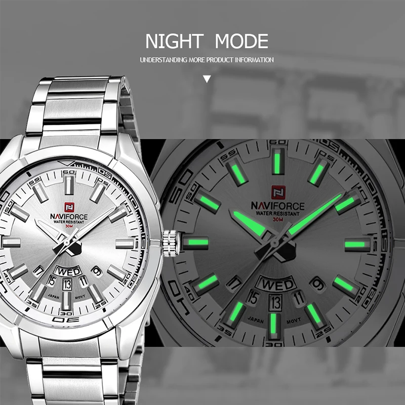 Часы NAVIFORCE, водонепроницаемые, со стальным ремешком, кварцевые, повседневные