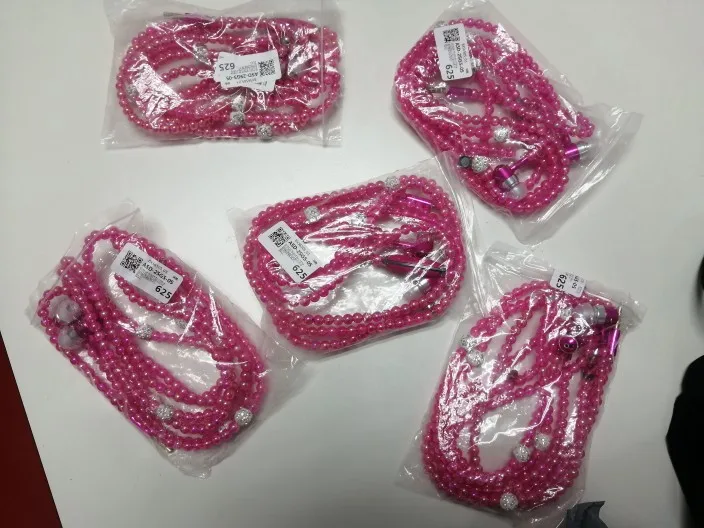 Ювелирные изделия Жемчужное ожерелье наушники с микрофоном, наушники для Iphone хiaomi в подарок на день рождения для девочек в розовом цвете, со стразами 8 видов цветов
