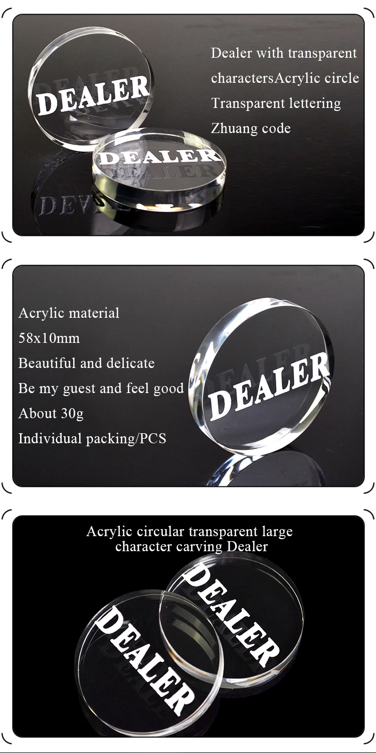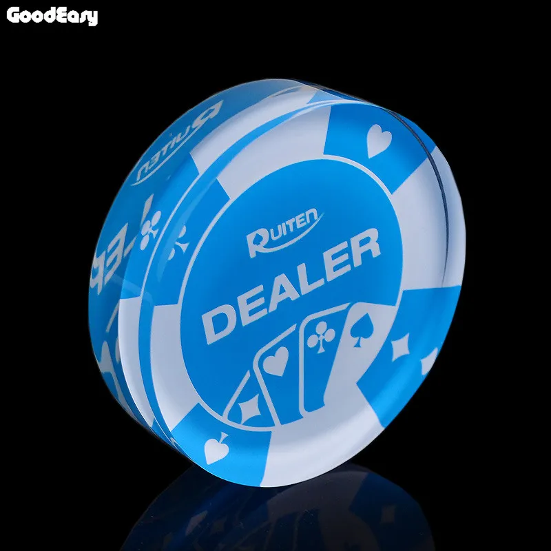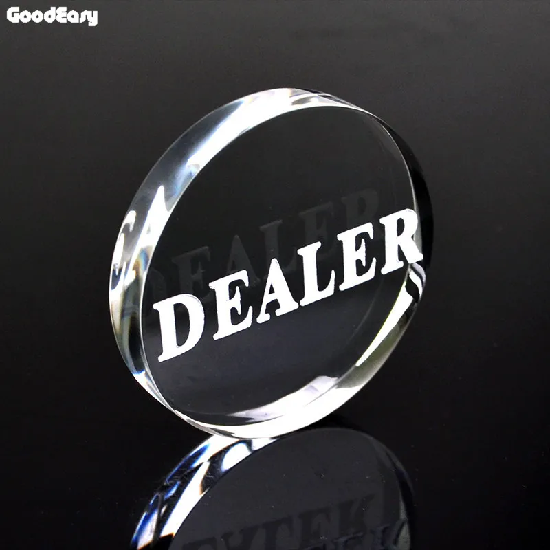 Горячая Распродажа, 1 шт., акриловые Кнопка Дилера покера Техасский Холдем 3 дюймов нажатие покер карты гвардии Кнопка Дилера покера 2 кристалла по бокам