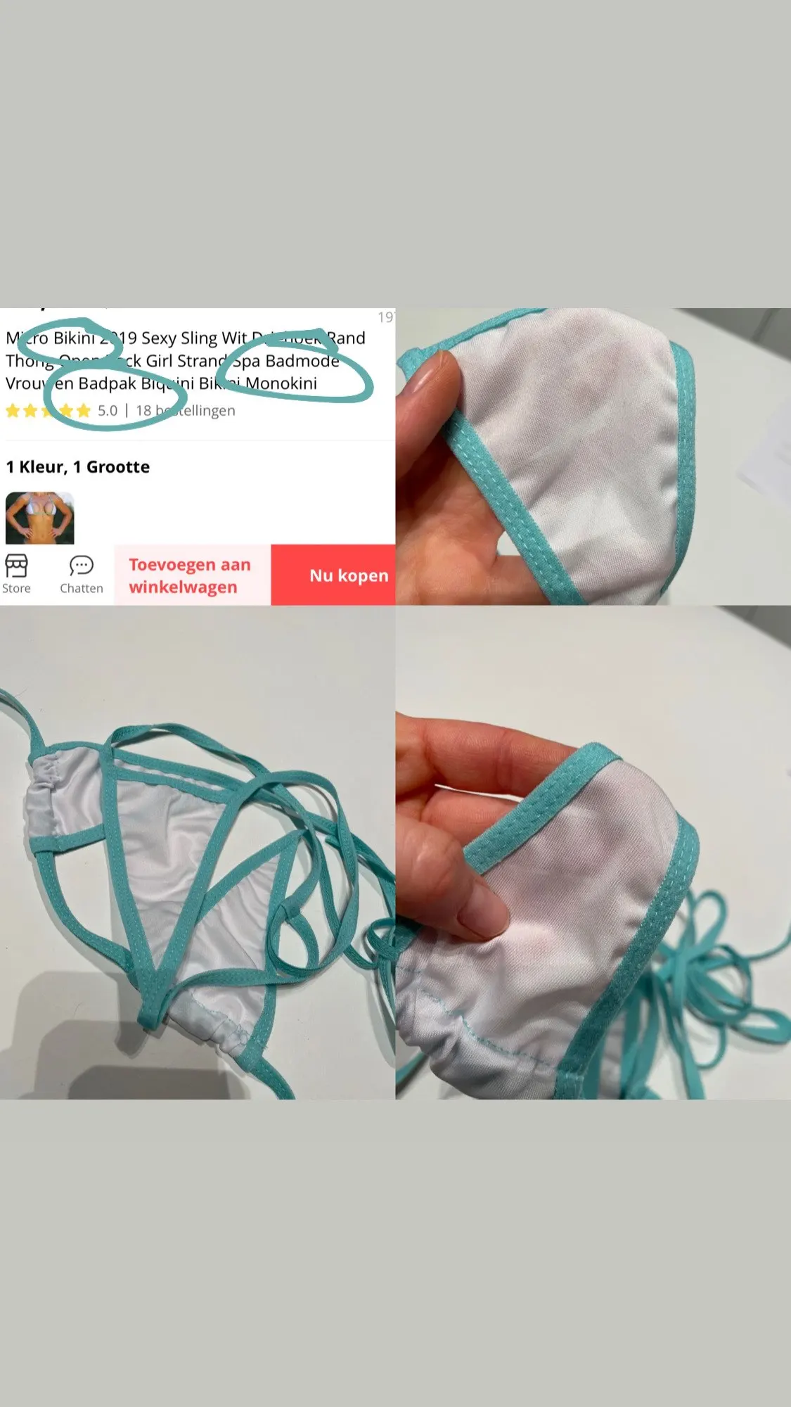 Meerdere malen vernoemt door verkoper dat dit een бикини is. Товар-бикини niet uit stof gemaakt! Erg teleurgesteld! Saler продает «бикини», «купальный костюм», товар даже не в купальной ткани! Полностью прозрачно! Нельзя носить на пляже.