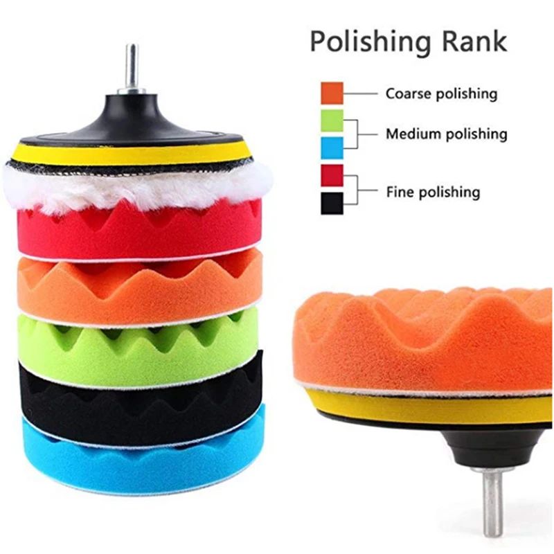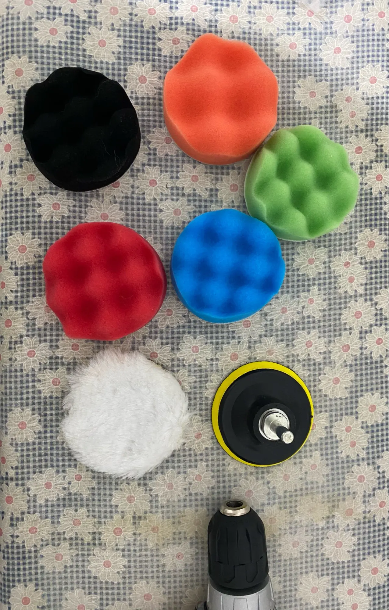 Набор полировальных подушек с 5 подушечками, 1 шерстяной буфер, 1 клейкая накладка на заднюю панель, 1 × адаптер для сверления