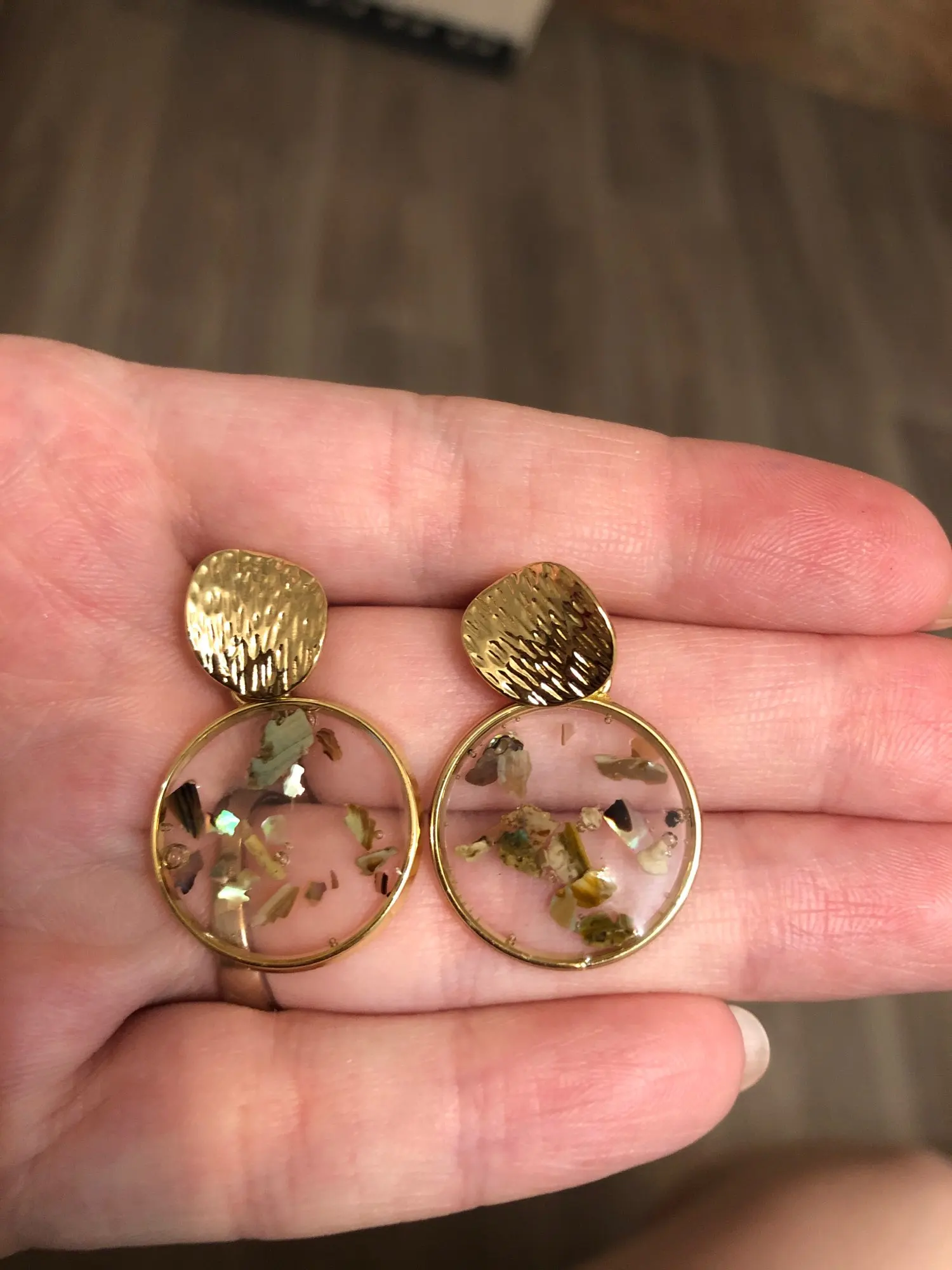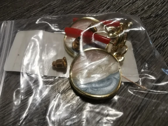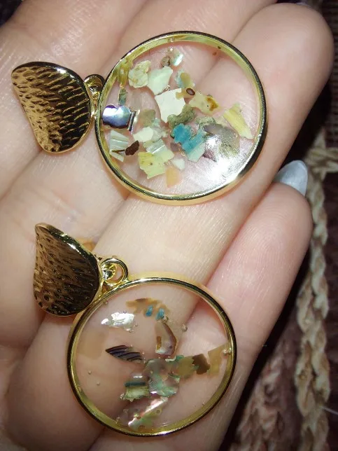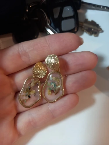 Пришли быстро. Ожидала что они будут больше. Серёжки милые. В некоторых местах выступают блёстки и эпоксидка не совсем прозрачная.