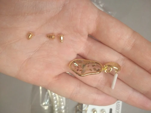 Все как в описании, в комплекте - 6 застёжек, за что Спасибо. Гвоздики в ушах смотрятся громоздко, акриловые - отлично!